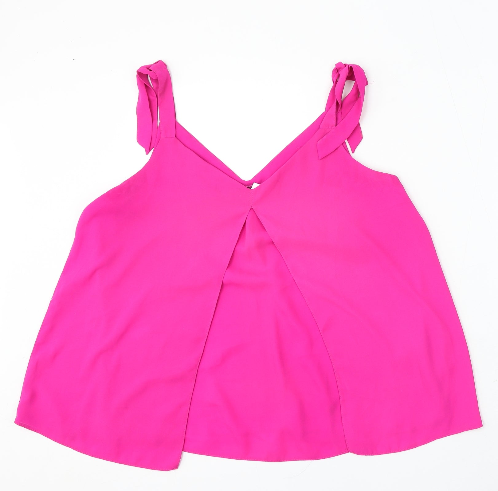 George Womens Pink Polyester Basic Blouse Size 12 V-Neck