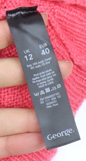 George Womens Pink Zebra Animal Print Crew Neck Jumper Size 12