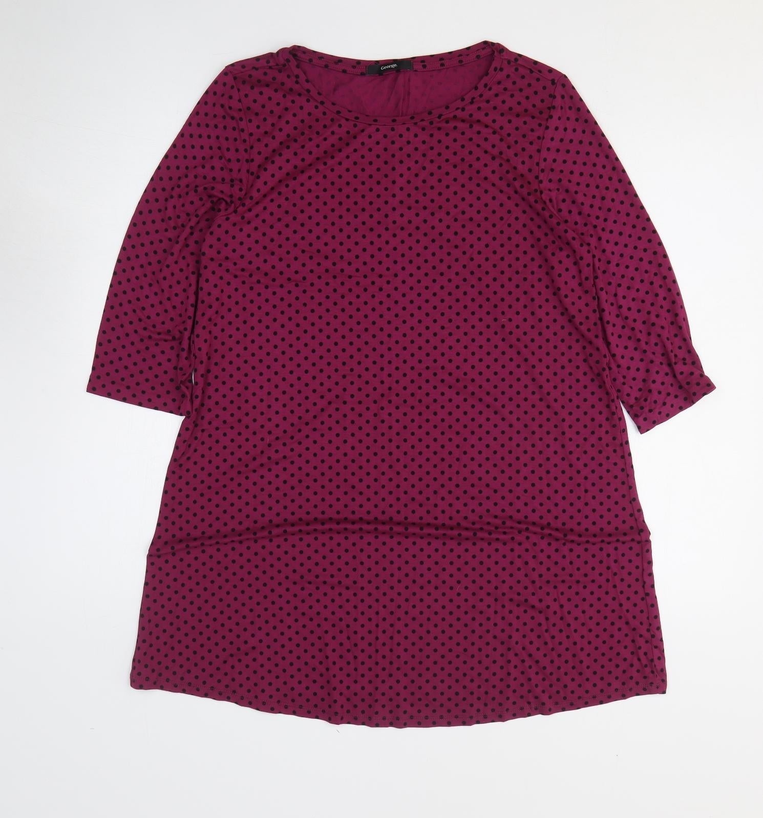 George Womens Purple Polka Dot Polyester T-Shirt Dress Size M Crew Neck