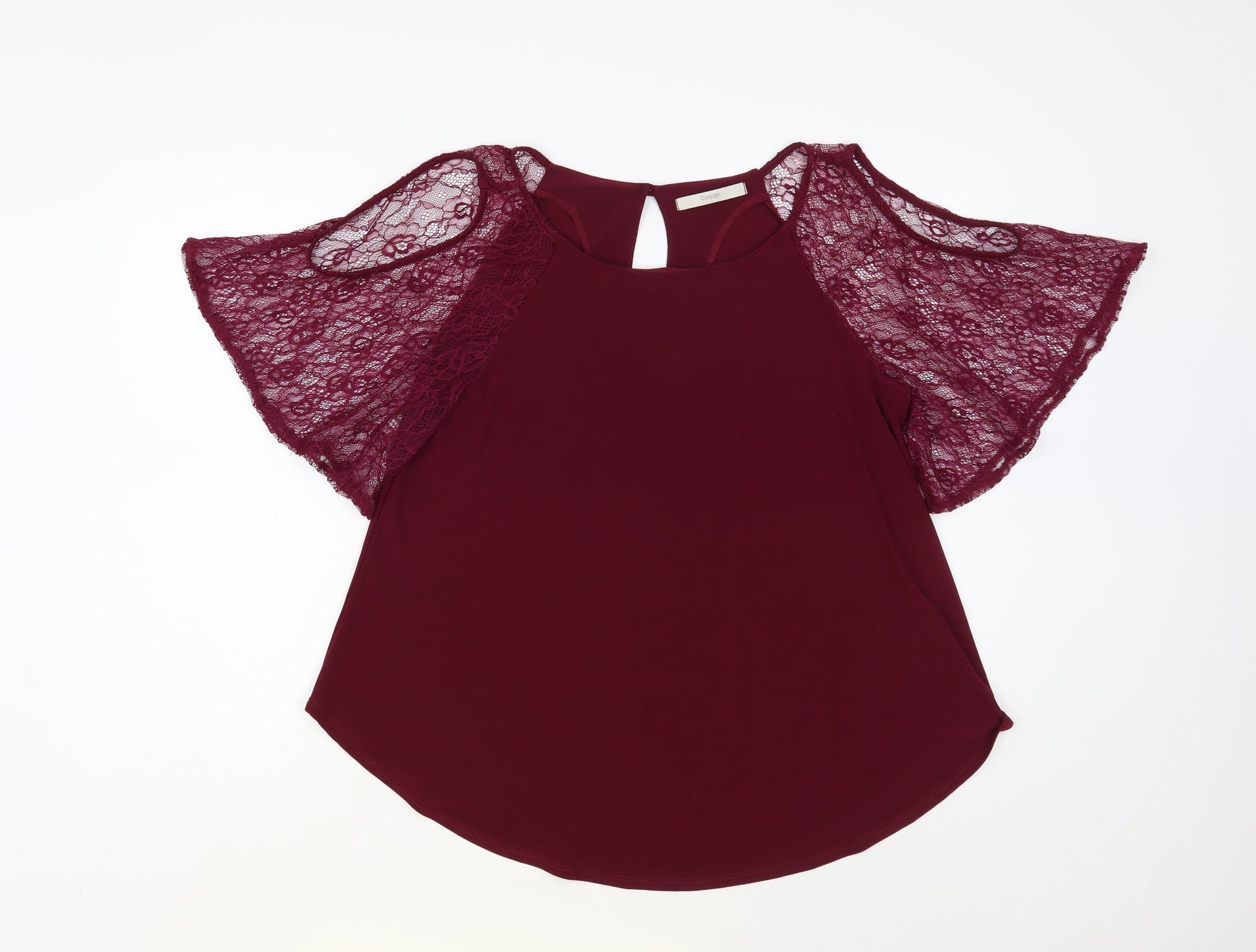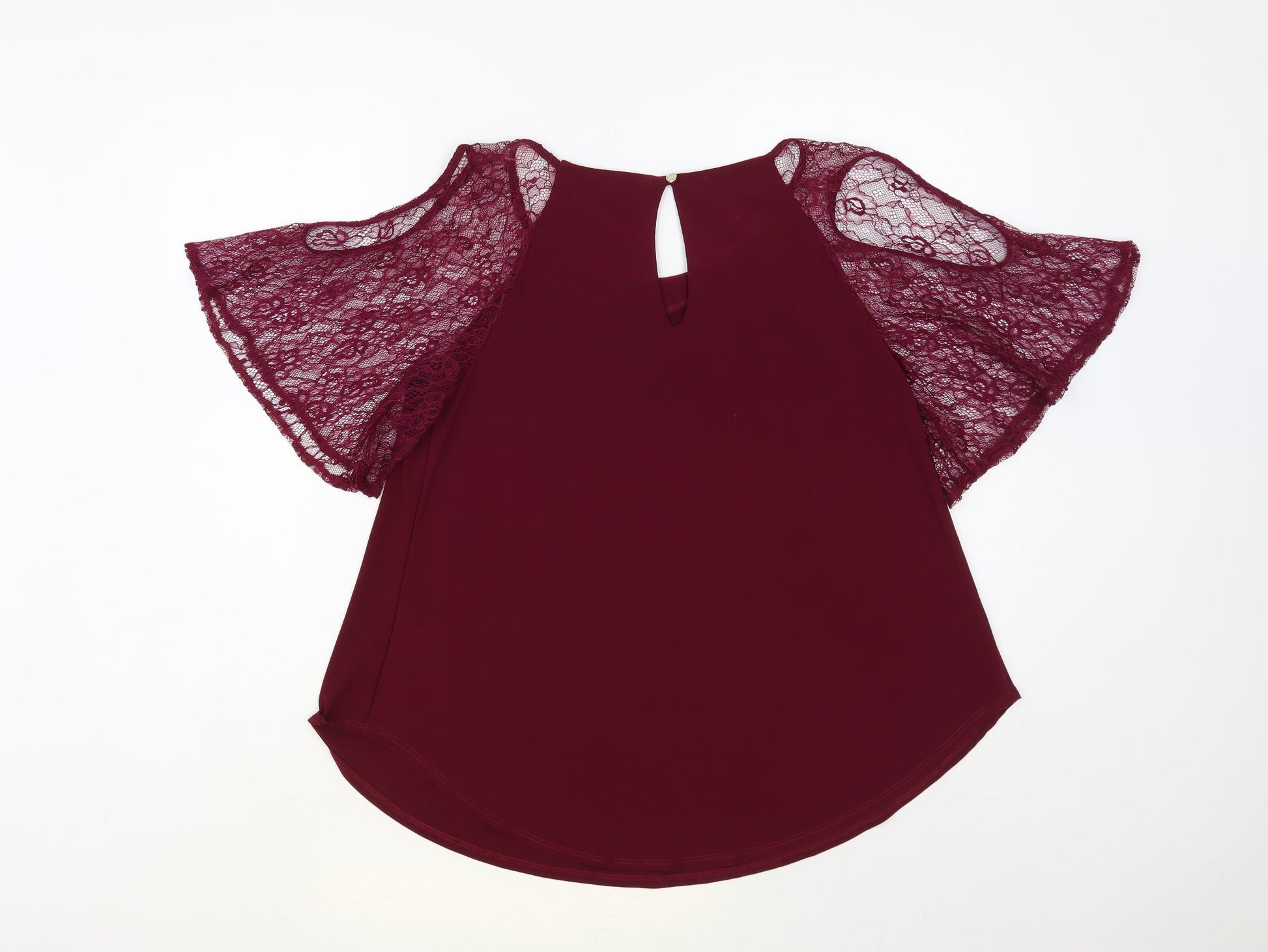 George Womens Purple Polyester Basic Blouse Size 10 Boat Neck - Lace Sleeves
