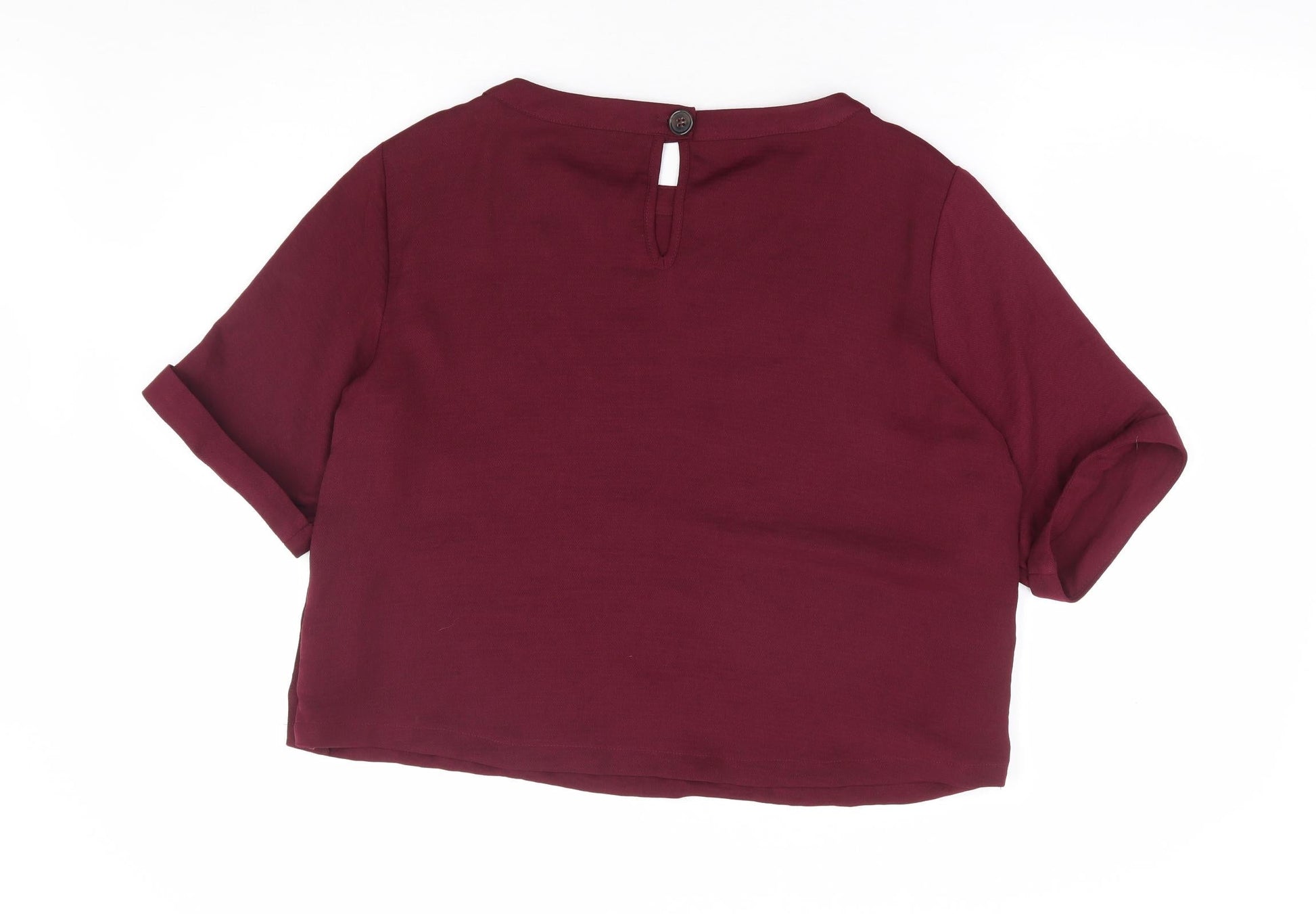 George Womens Purple Polyester Basic Blouse Size 14 Boat Neck
