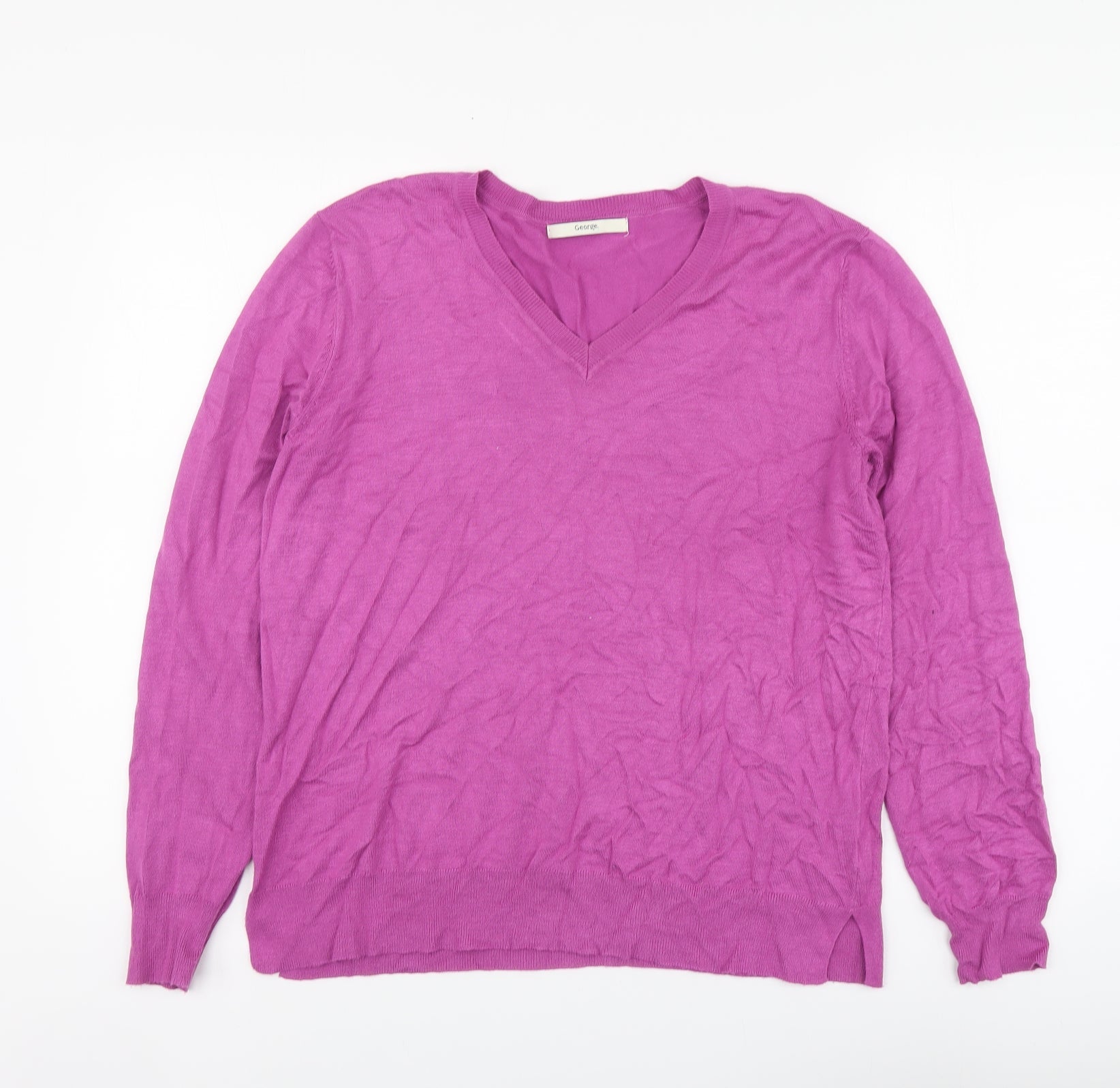 George Womens Purple V-Neck Viscose Pullover Jumper Size 14
