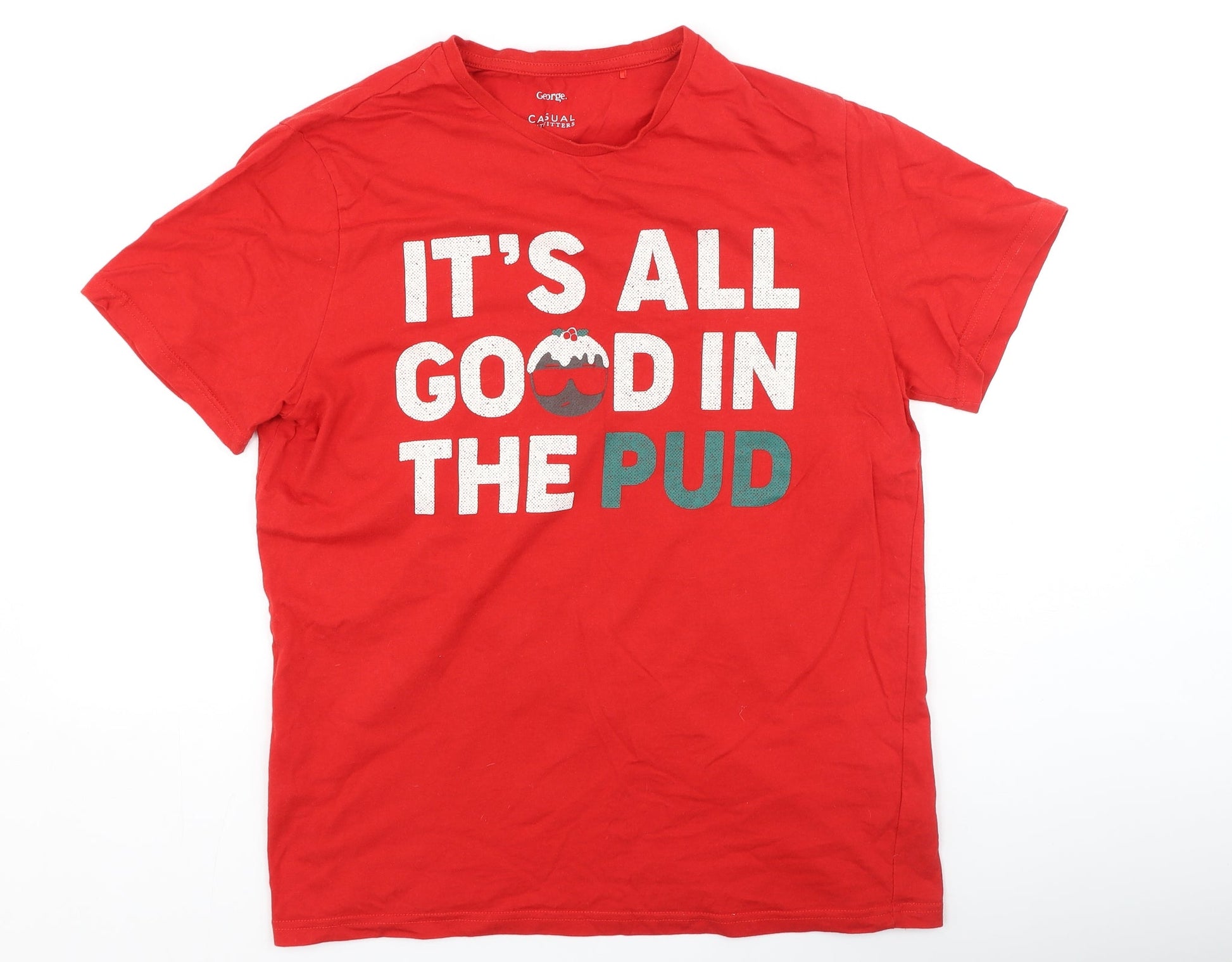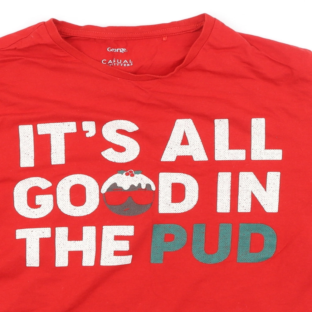 George Womens Red Cotton Basic T-Shirt Size L Round Neck