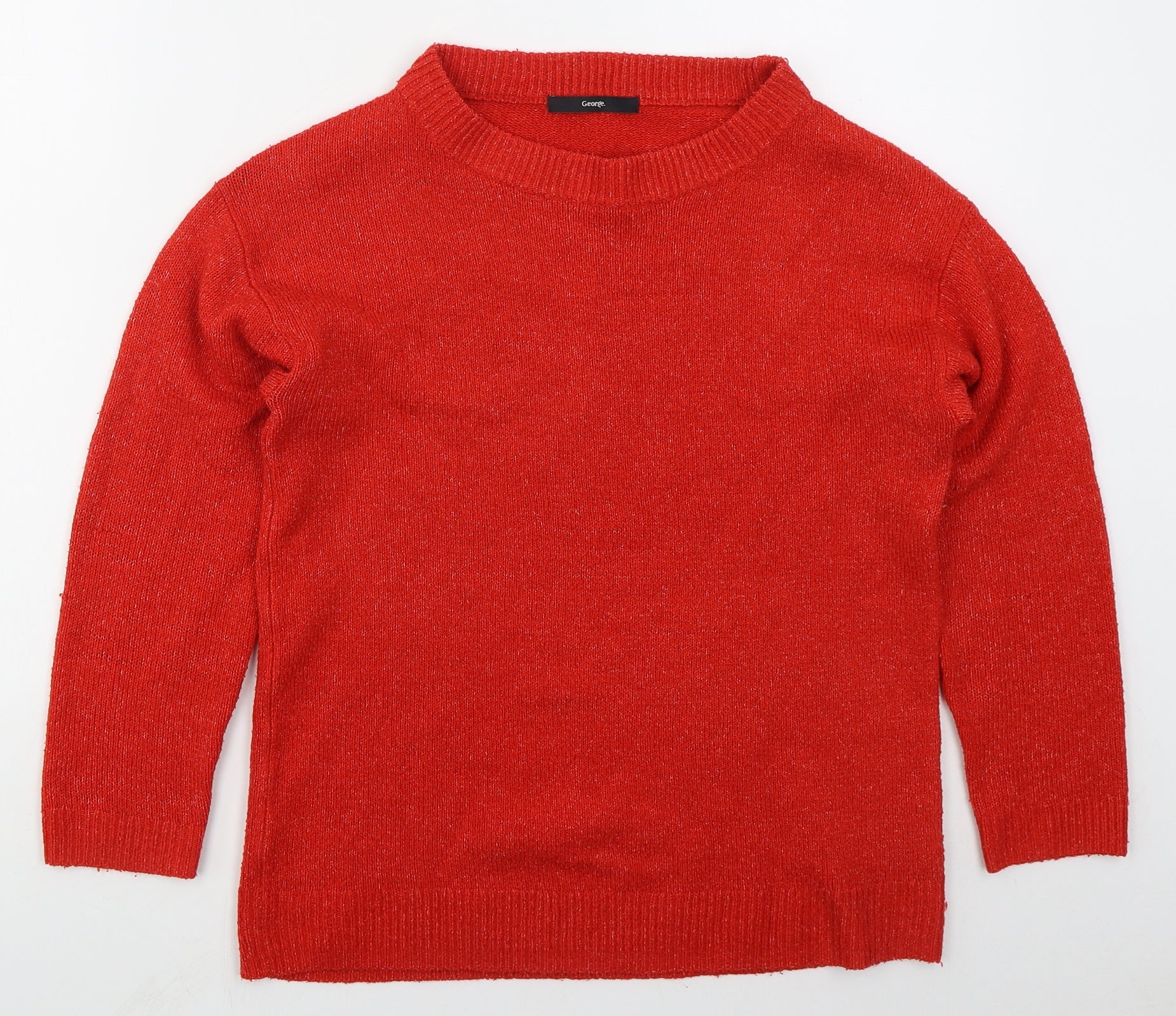 George Womens Red Crew Neck Acrylic Pullover Jumper Size 8