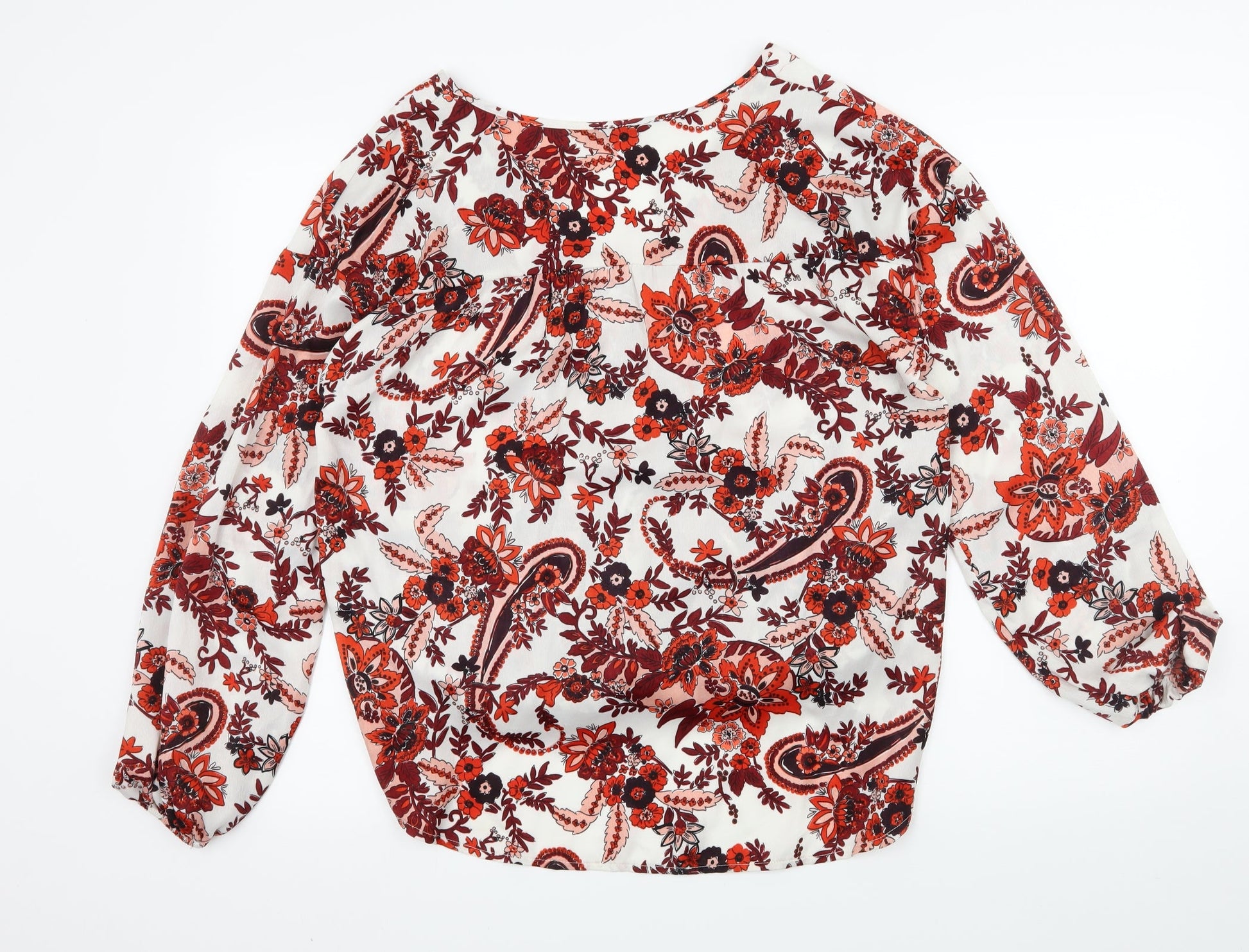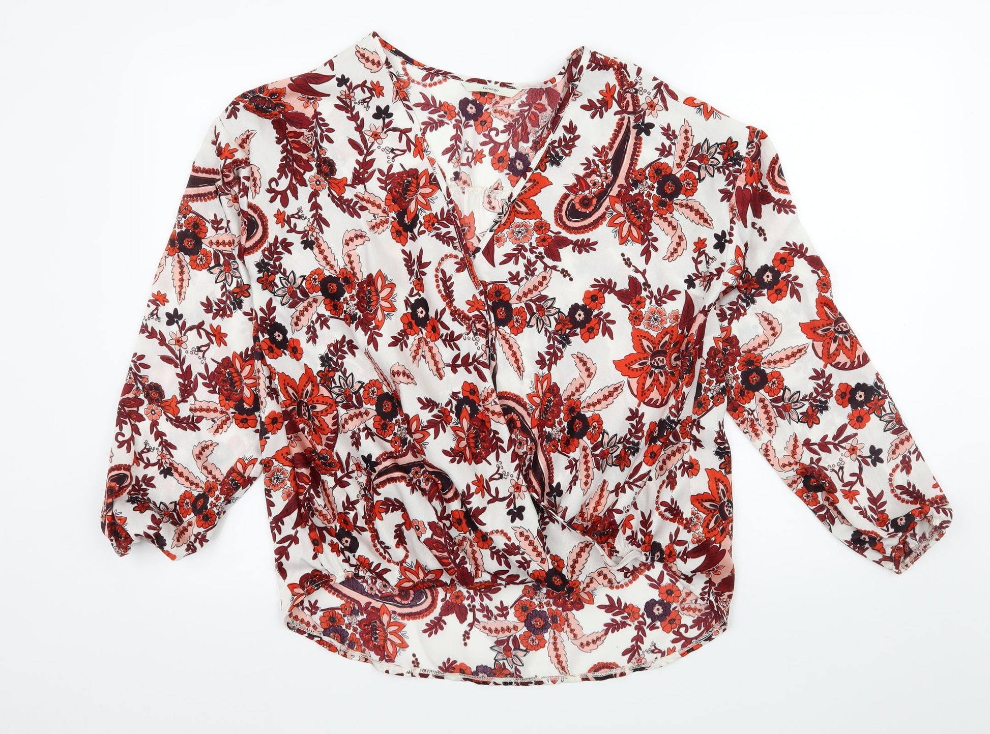 George Womens Red Floral Satin Basic Blouse Size 10