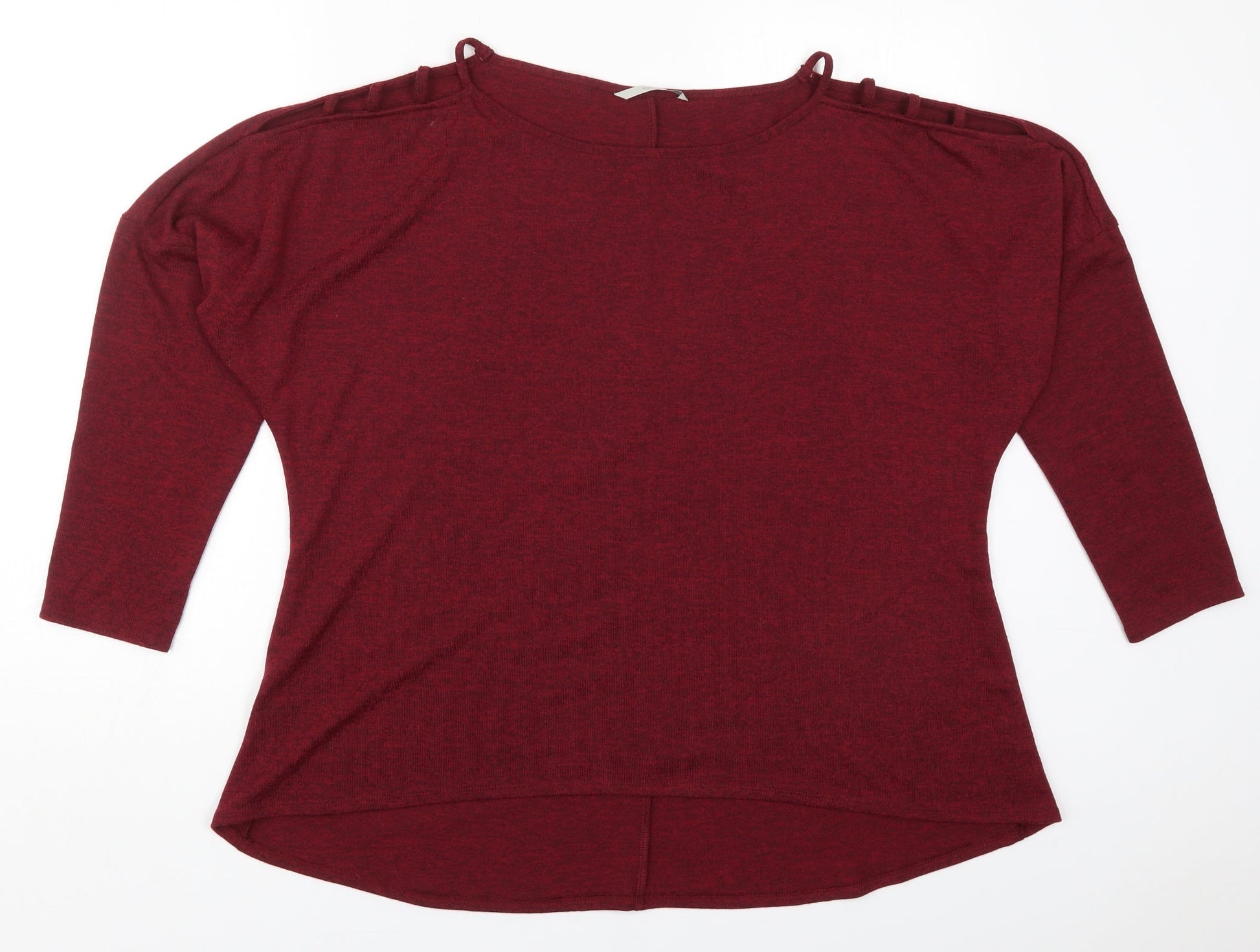George Womens Red Polyester Basic T-Shirt Size 14 Round Neck