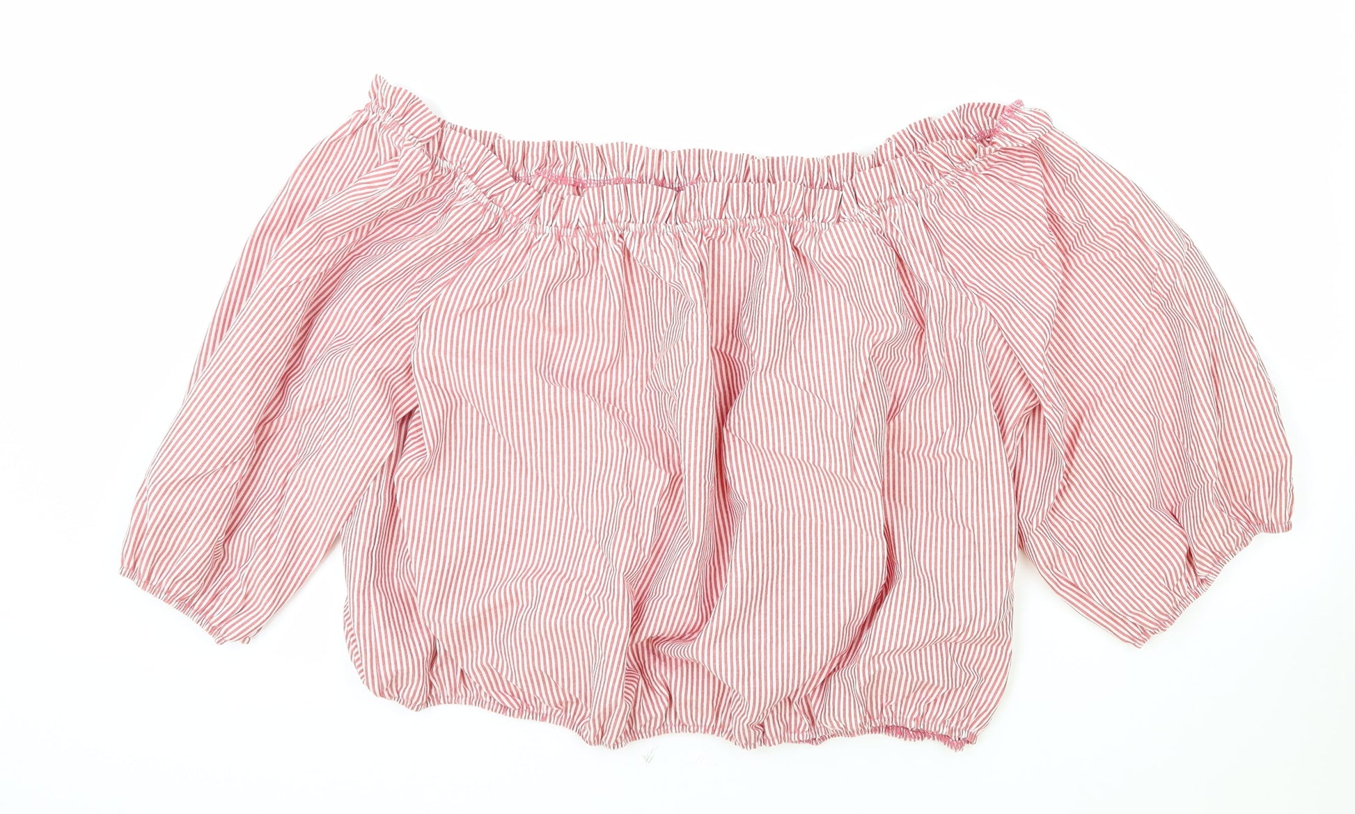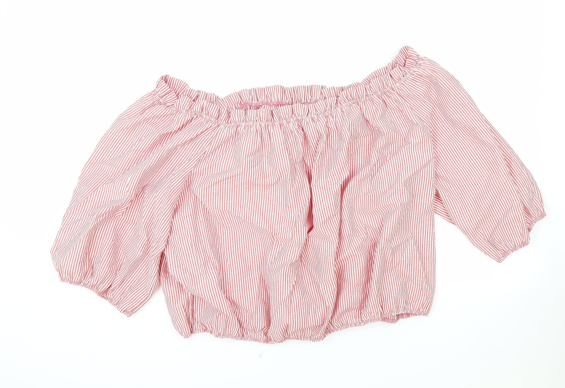 George Womens Red Striped Cotton Cropped Blouse Size 22 Boat Neck