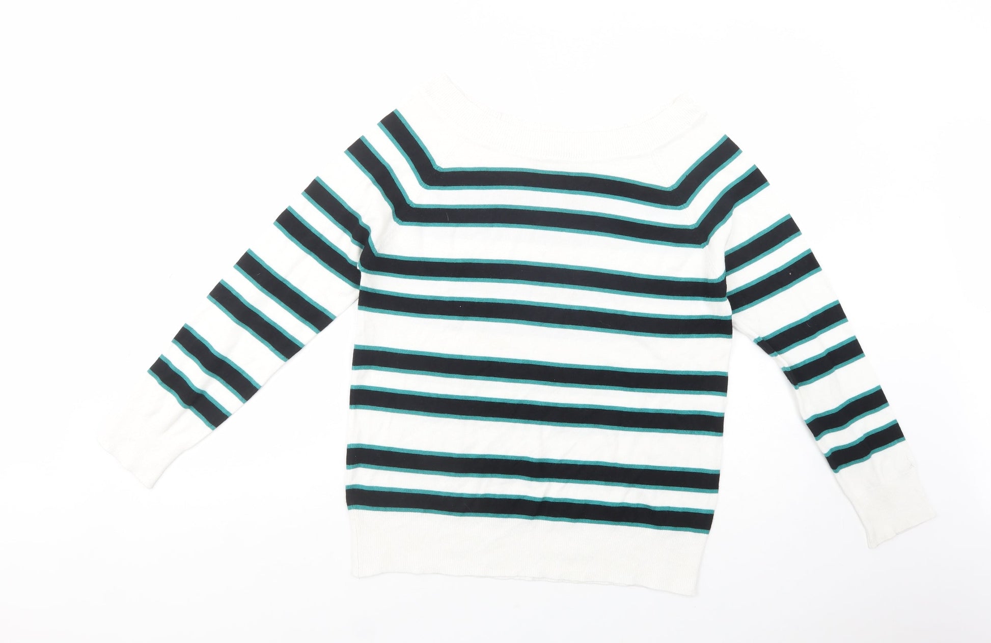 George Womens White Boat Neck Striped Viscose Pullover Jumper Size 14