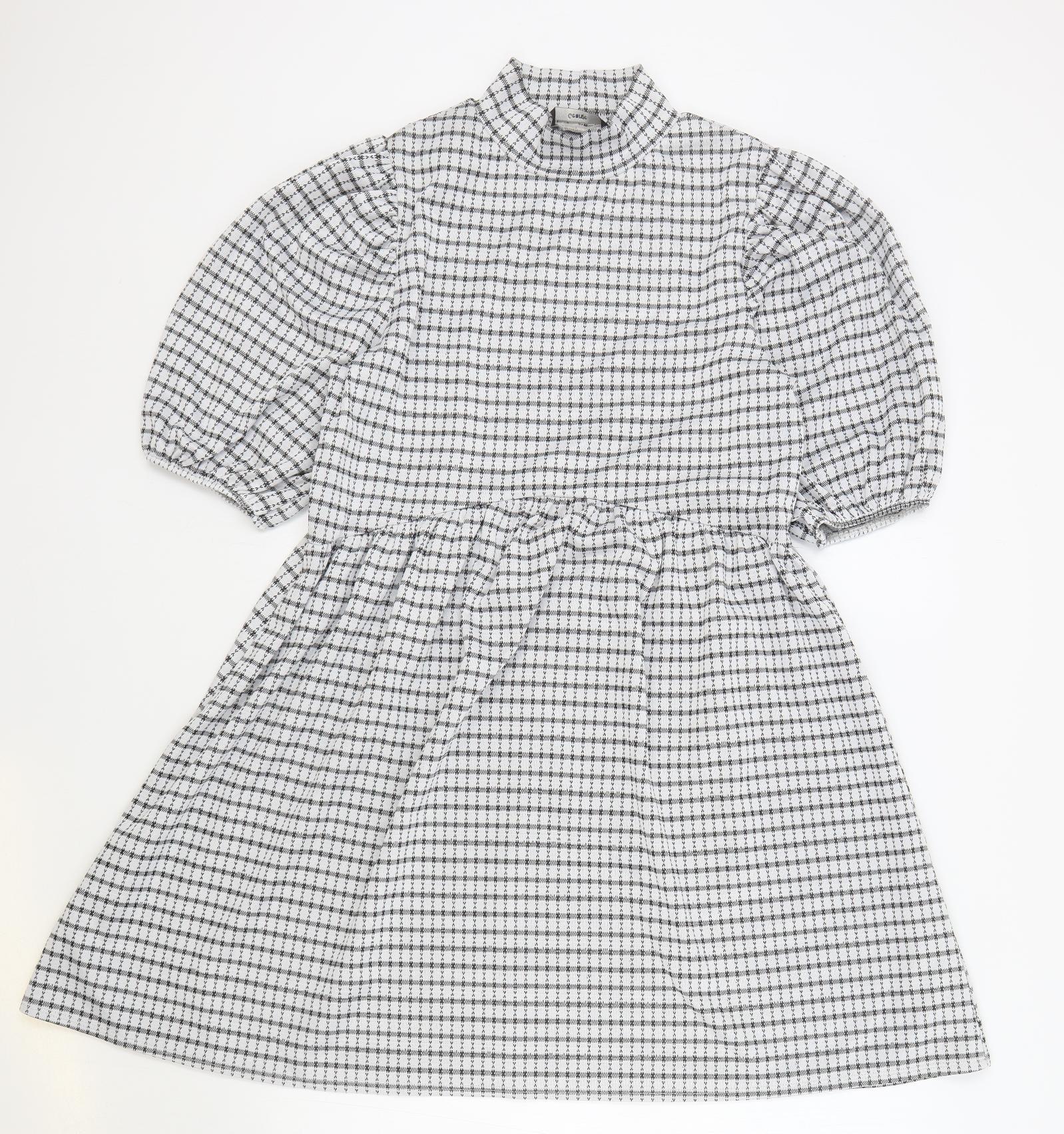 George Womens White Check Polyester Skater Dress Size 10 Mock Neck Pullover
