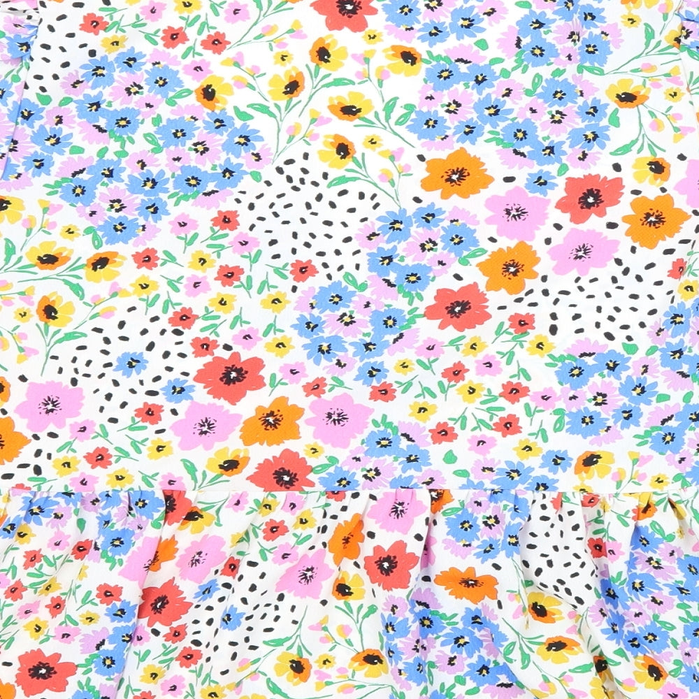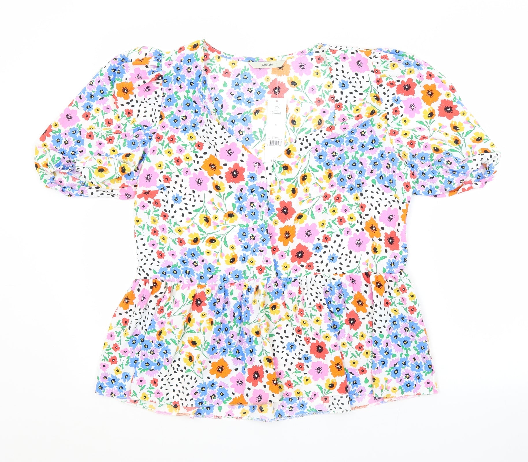 George Womens White Floral Polyester Basic Blouse Size 10 V-Neck