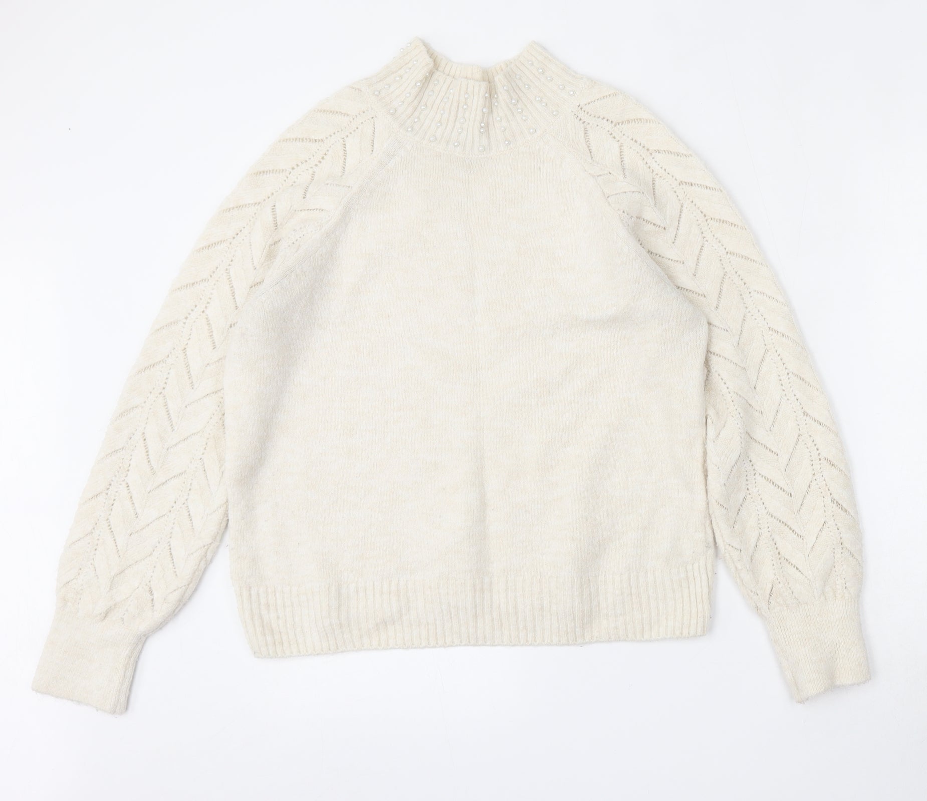 George Womens White Mock Neck Acrylic Pullover Jumper Size M