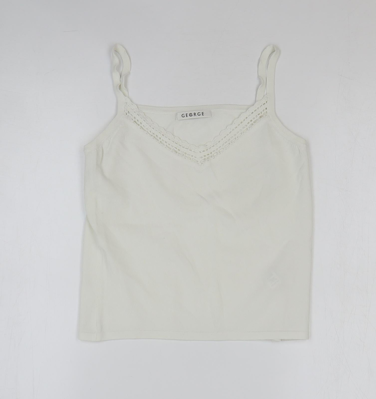 George Womens White Nylon Basic Tank Size 14 V-Neck