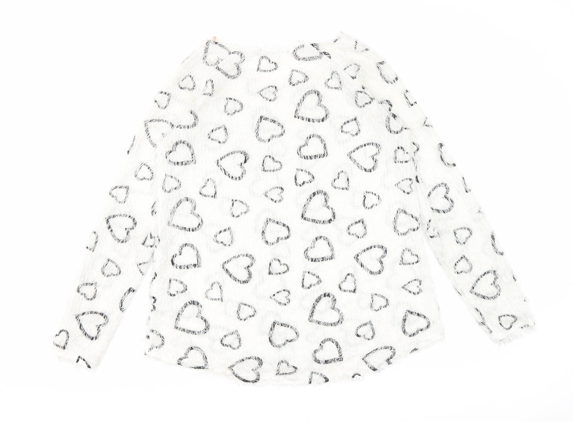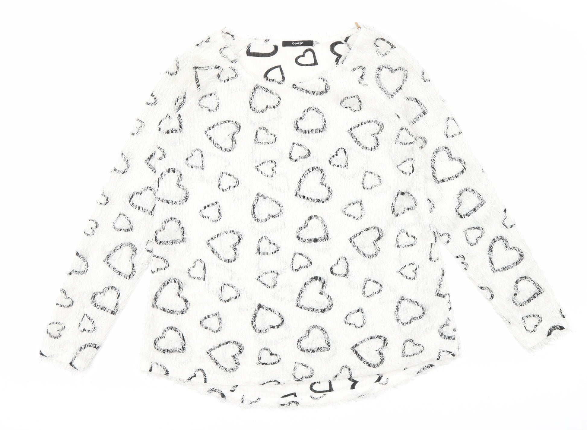 George Womens White Round Neck Geometric Polyester Pullover Jumper Size 10 - Hearts pattern
