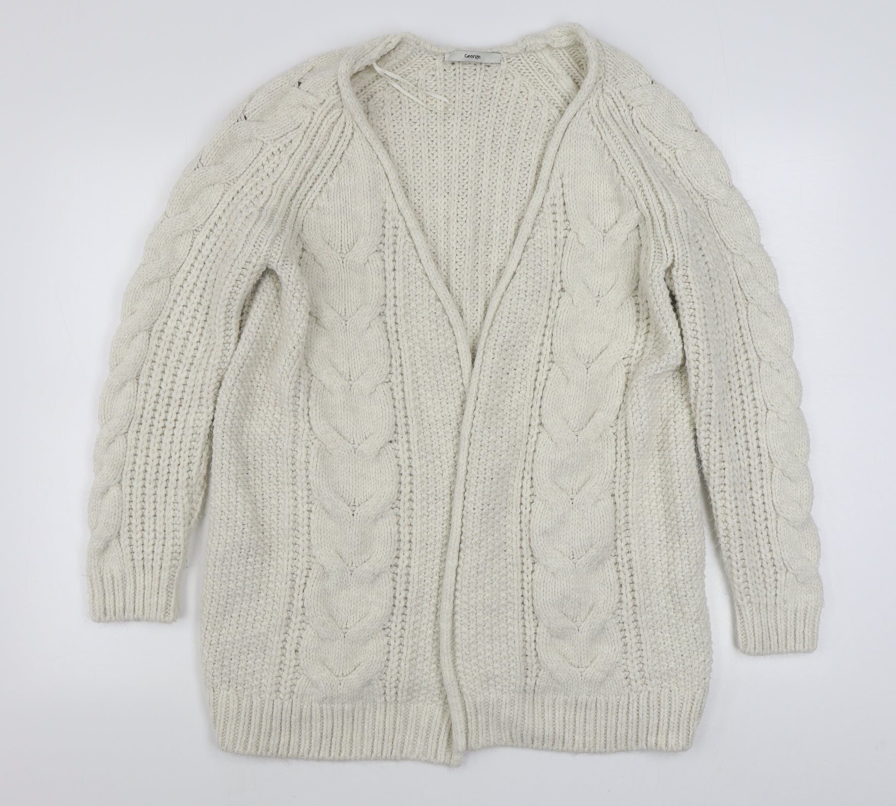 George Womens White V-Neck Acrylic Cardigan Jumper Size M