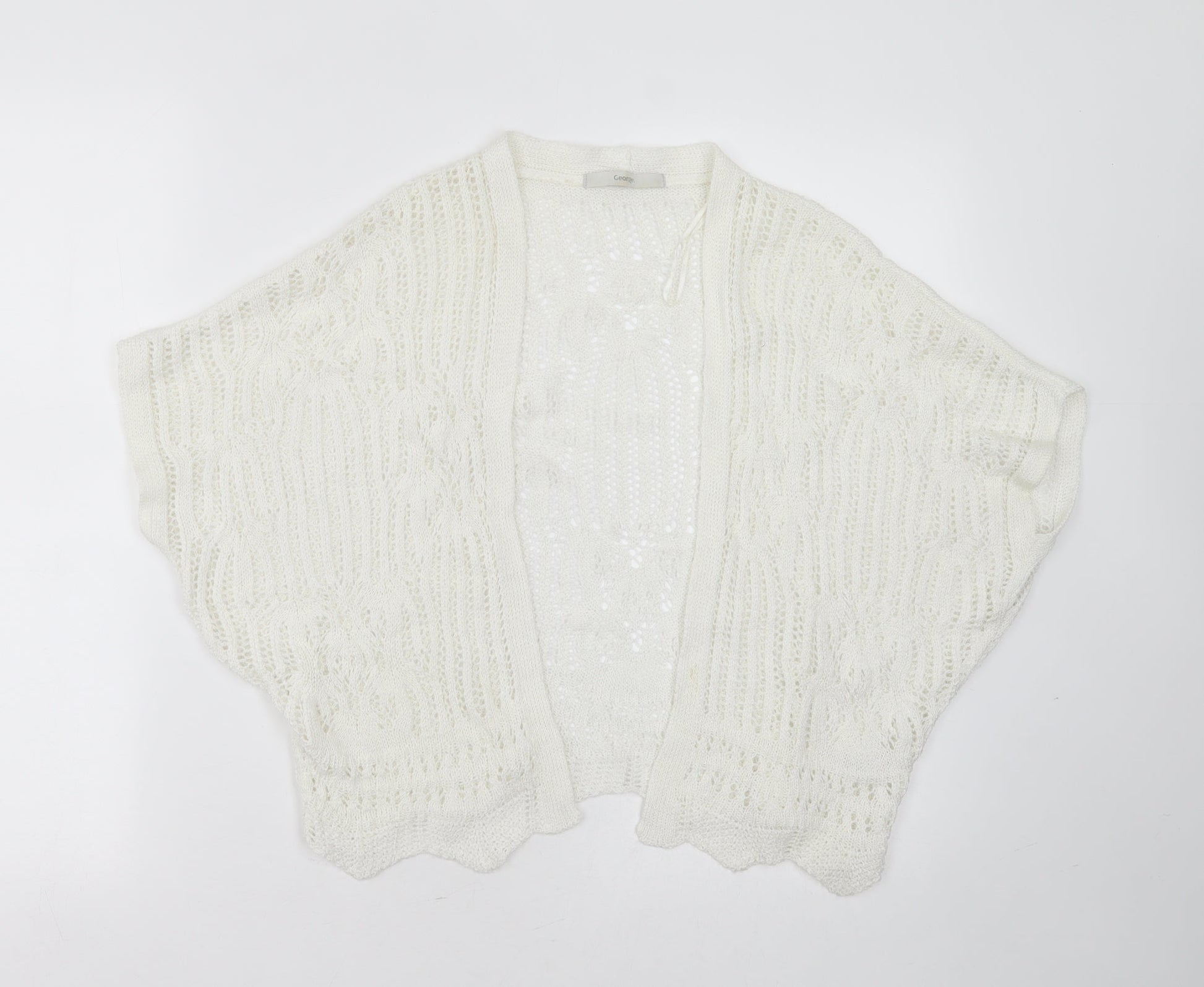 George Womens White V-Neck Geometric Acrylic Cardigan Jumper Size XS