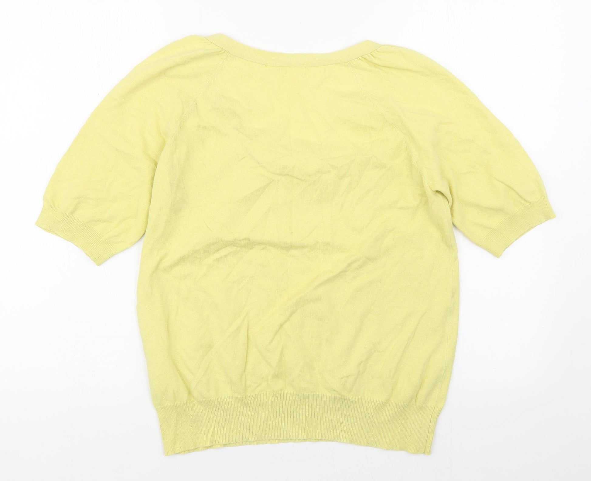 George Womens Yellow Cotton Basic Blouse Size 14 Scoop Neck