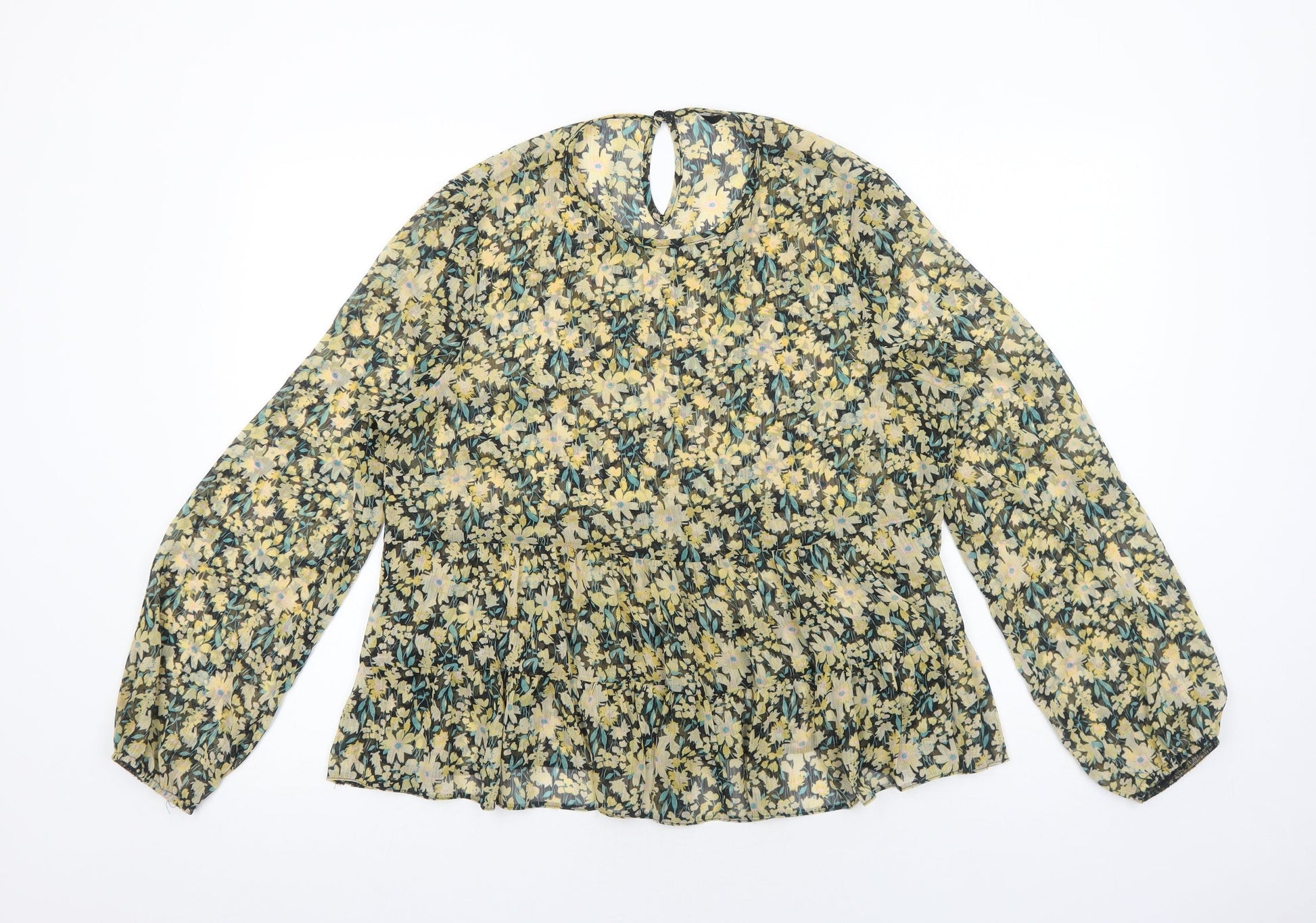 George Womens Yellow Floral Polyester Basic Blouse Size 14 Round Neck