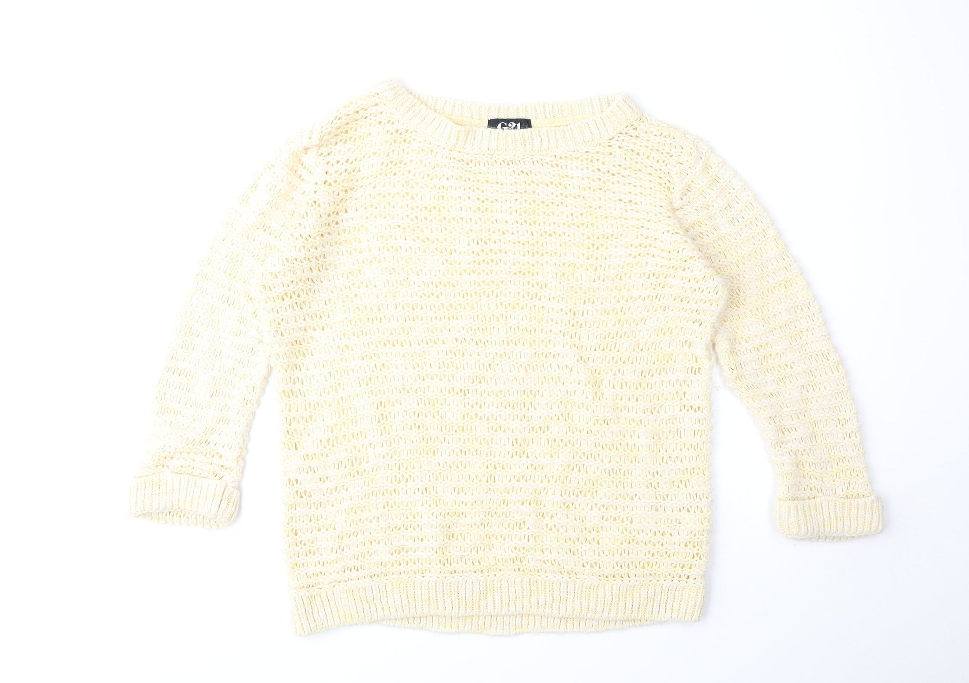 George Womens Yellow Round Neck Acrylic Pullover Jumper Size 10