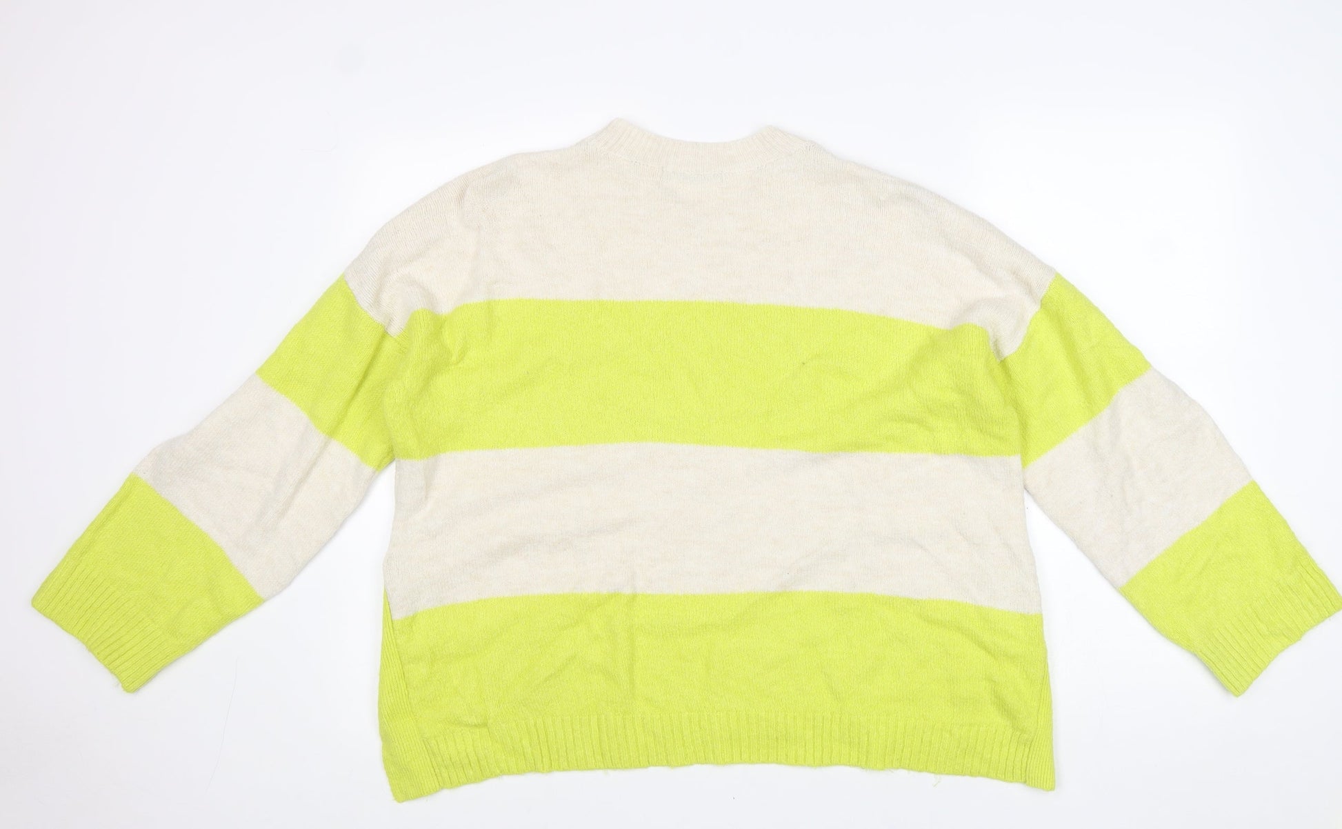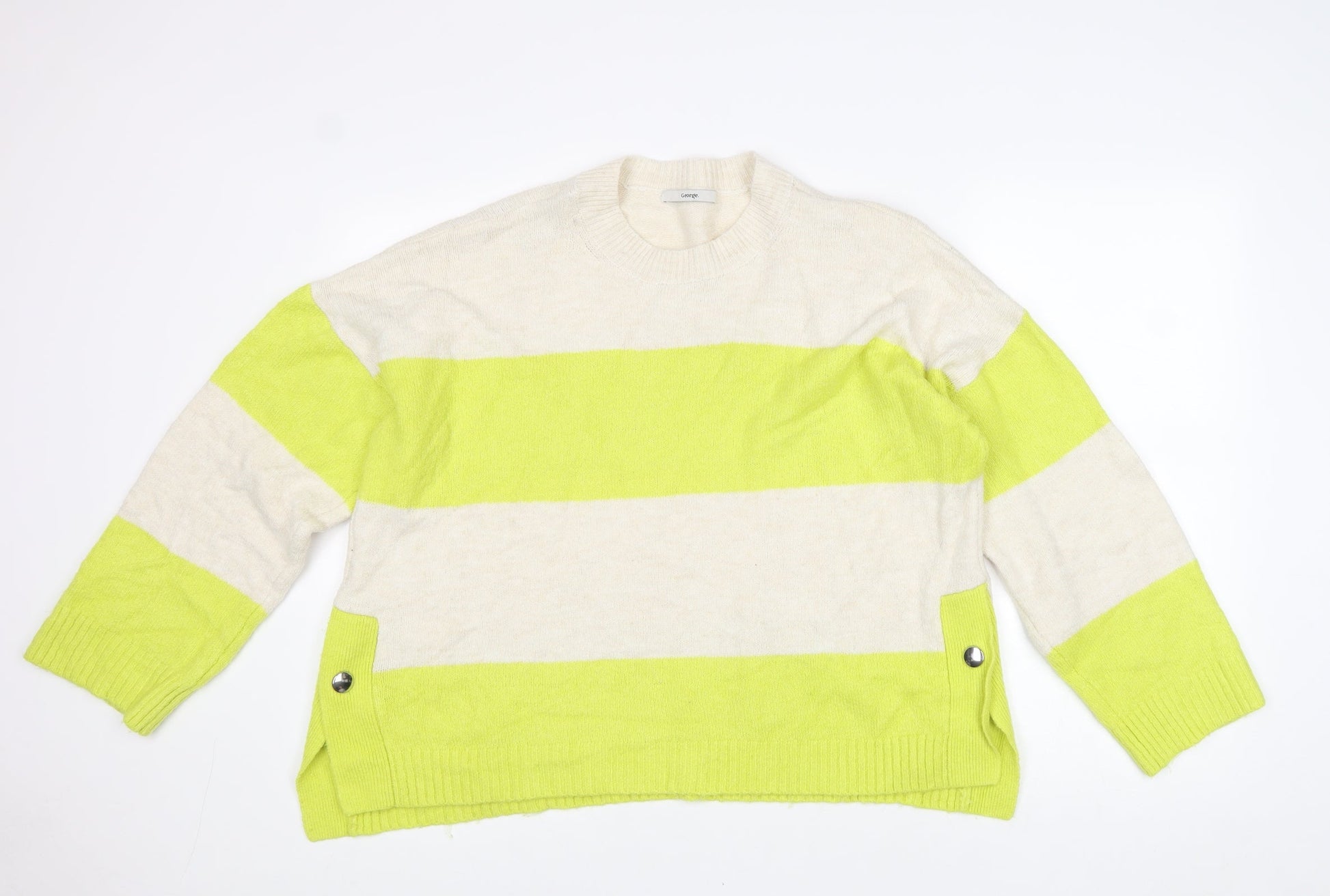 George Womens Yellow Round Neck Striped Cotton Pullover Jumper Size L