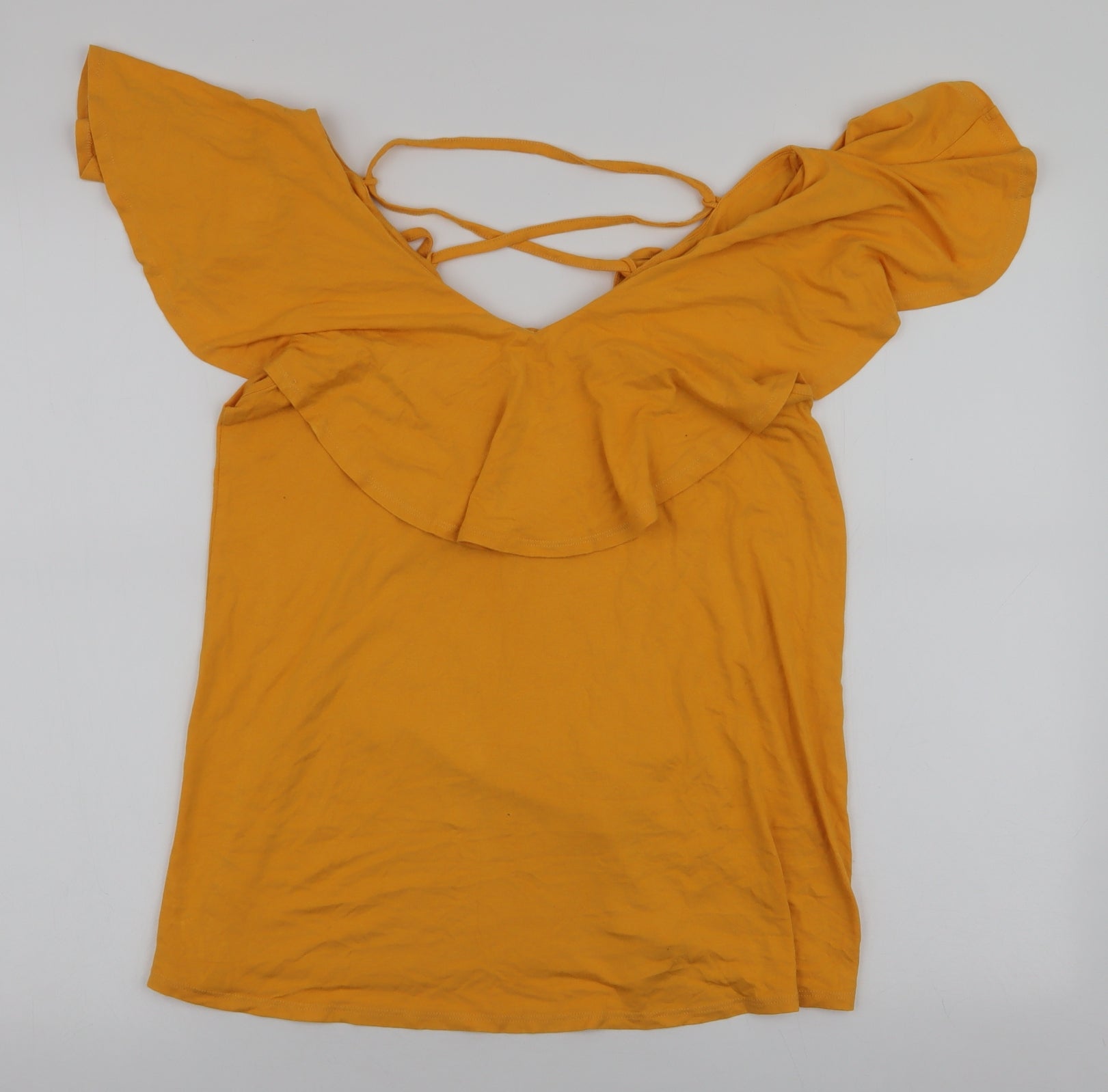 George Womens Yellow Viscose Jersey Blouse Size 10 V-Neck - Tie detail on back