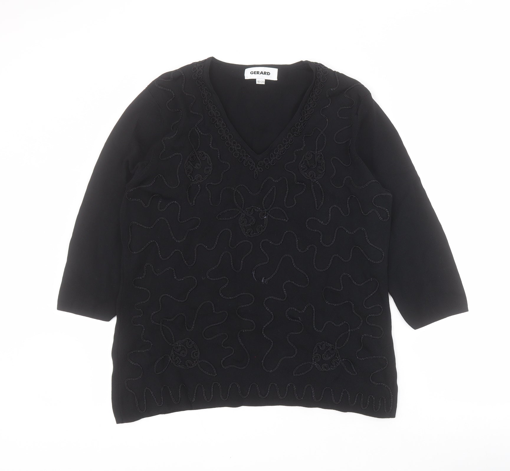 Gerard Womens Black V-Neck Viscose Pullover Jumper Size 18