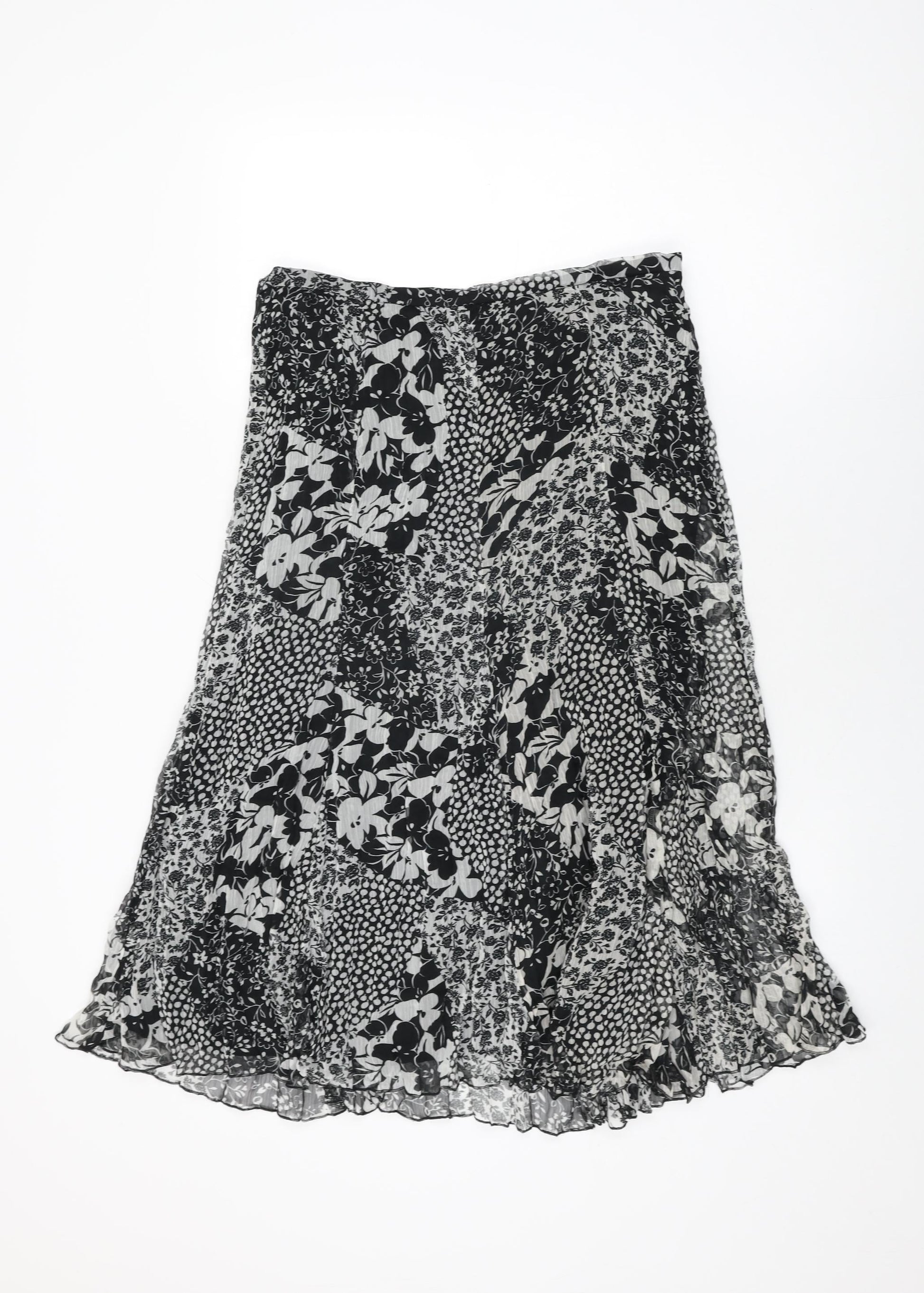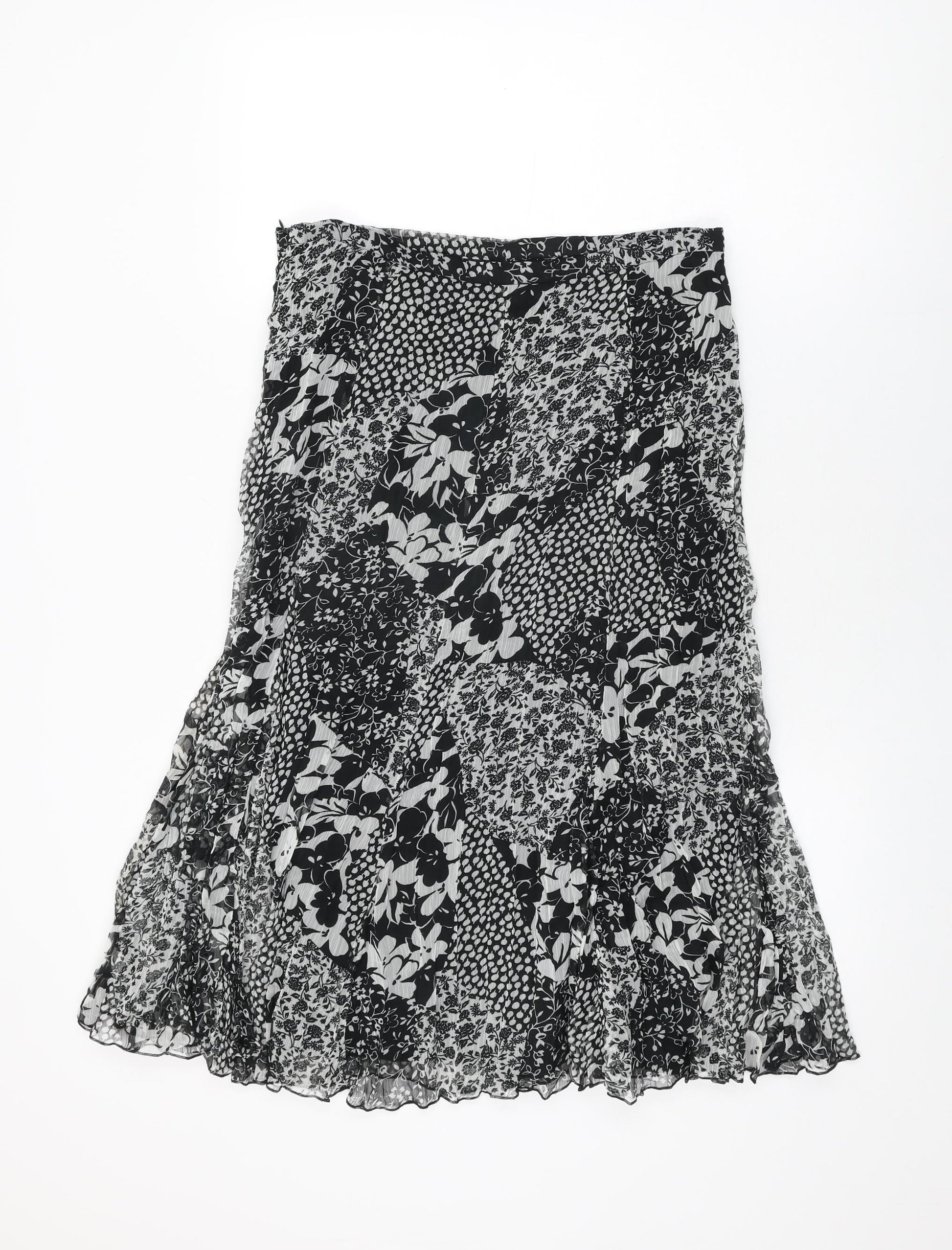 Gerry Weber Womens Black Floral Polyester Swing Skirt Size 14 Zip