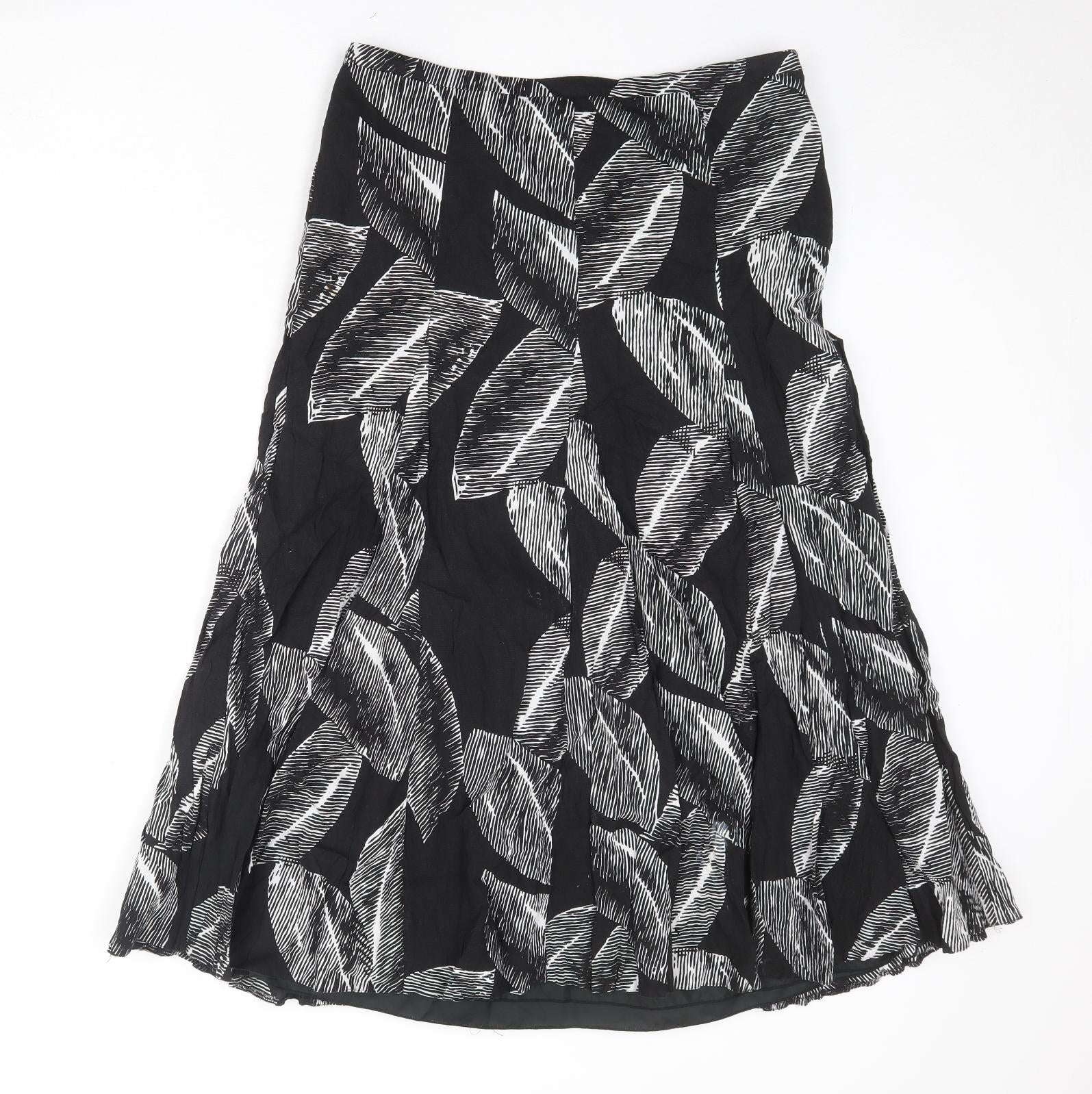 Gerry Weber Womens Black Geometric Cotton Swing Skirt Size 16 Zip - Leaf pattern