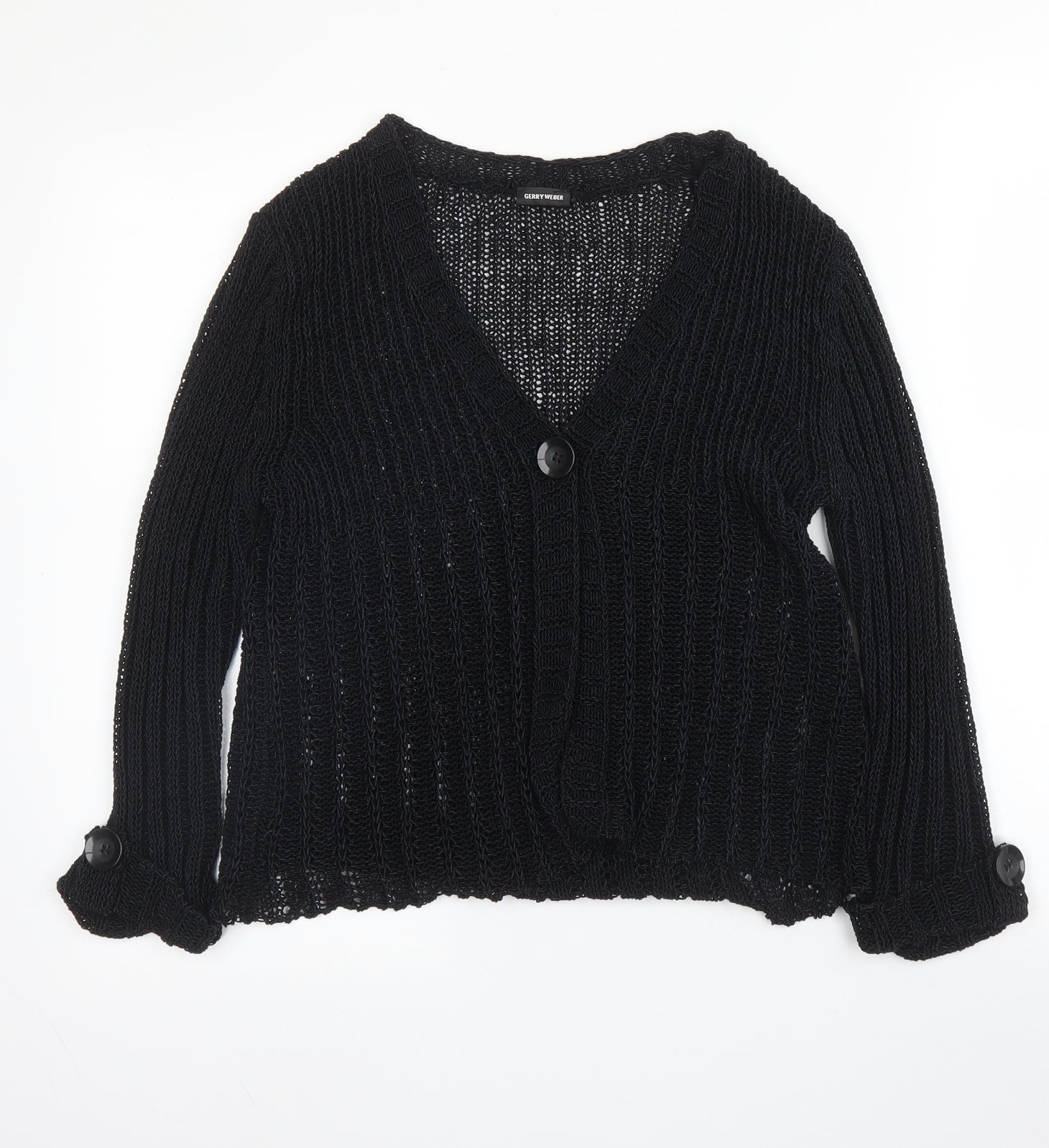 Gerry Weber Womens Black V-Neck Acrylic Cardigan Jumper Size 14