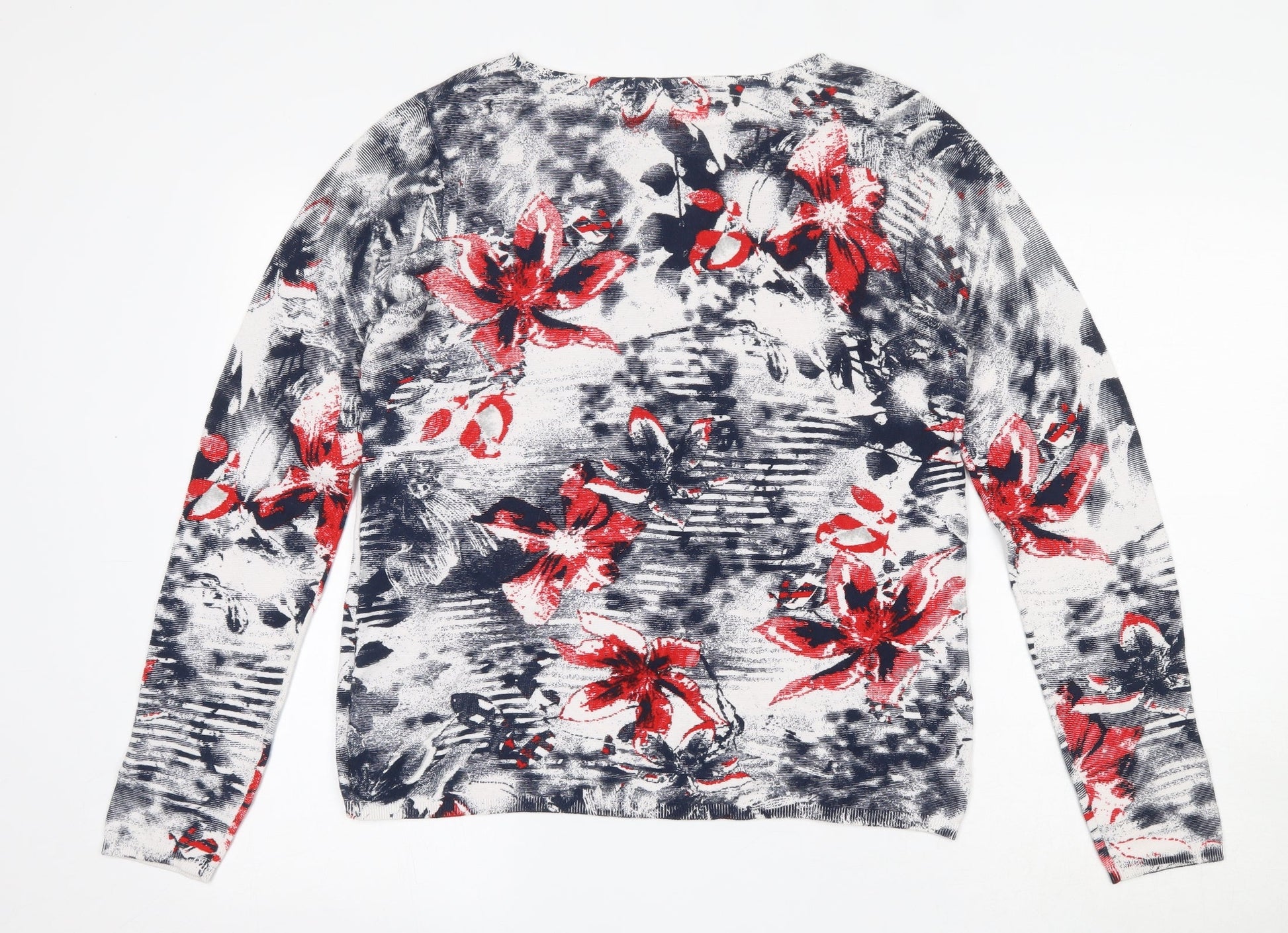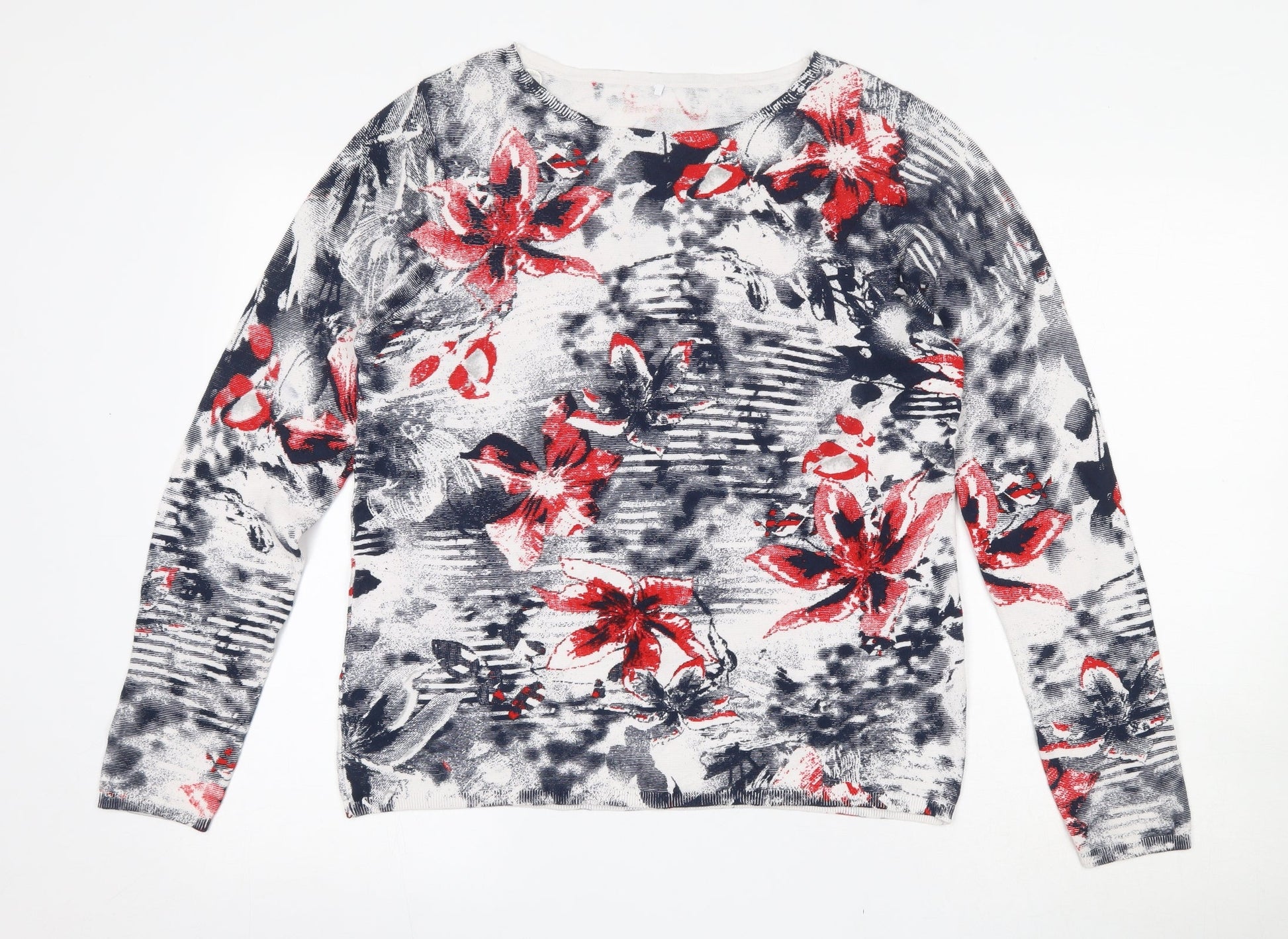 Gerry Weber Womens Blue Round Neck Geometric 100% Cotton Pullover Jumper Size 12