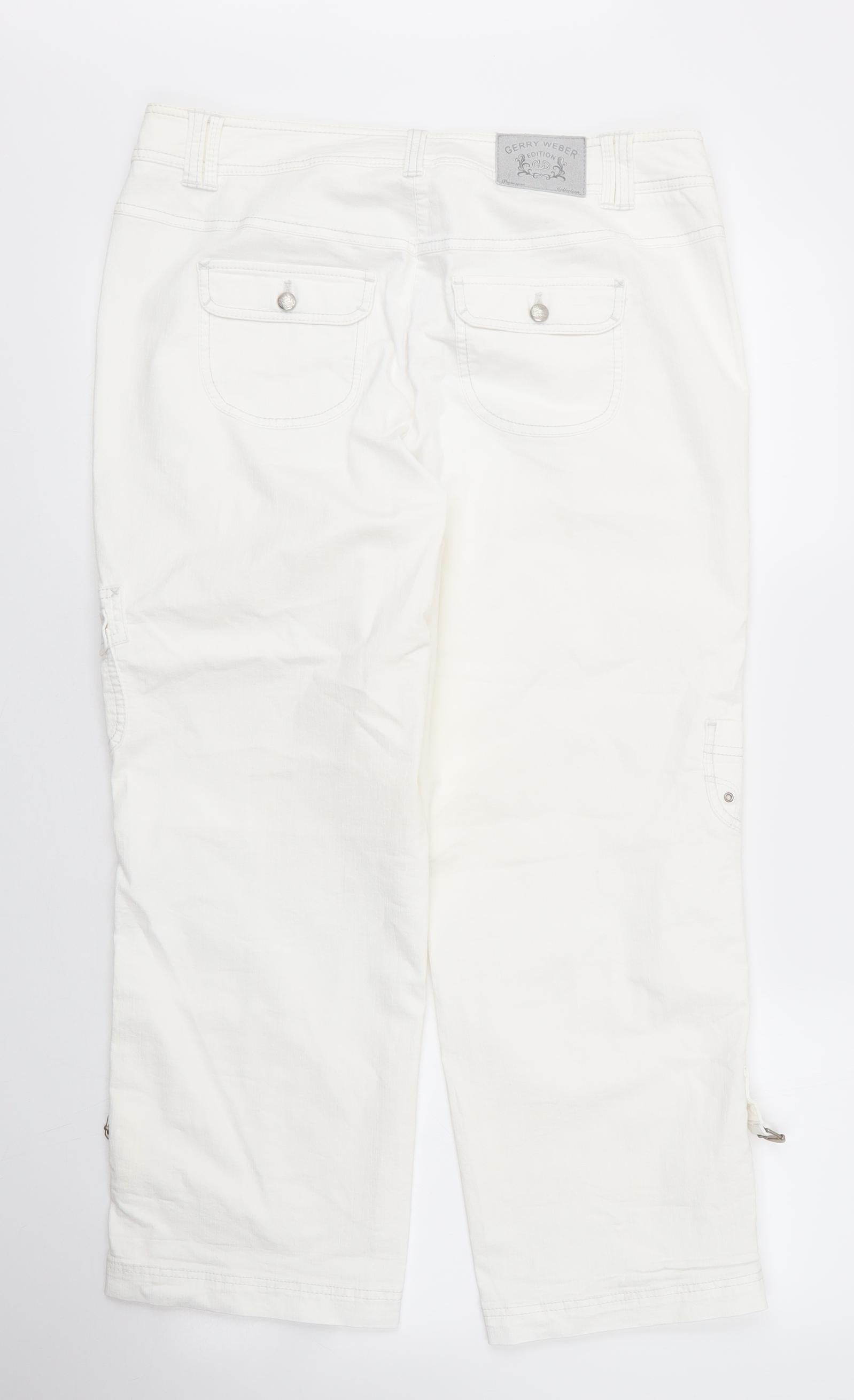 Gerry Weber Womens White Cotton Capri Trousers Size 34 in L27 in Regular Zip