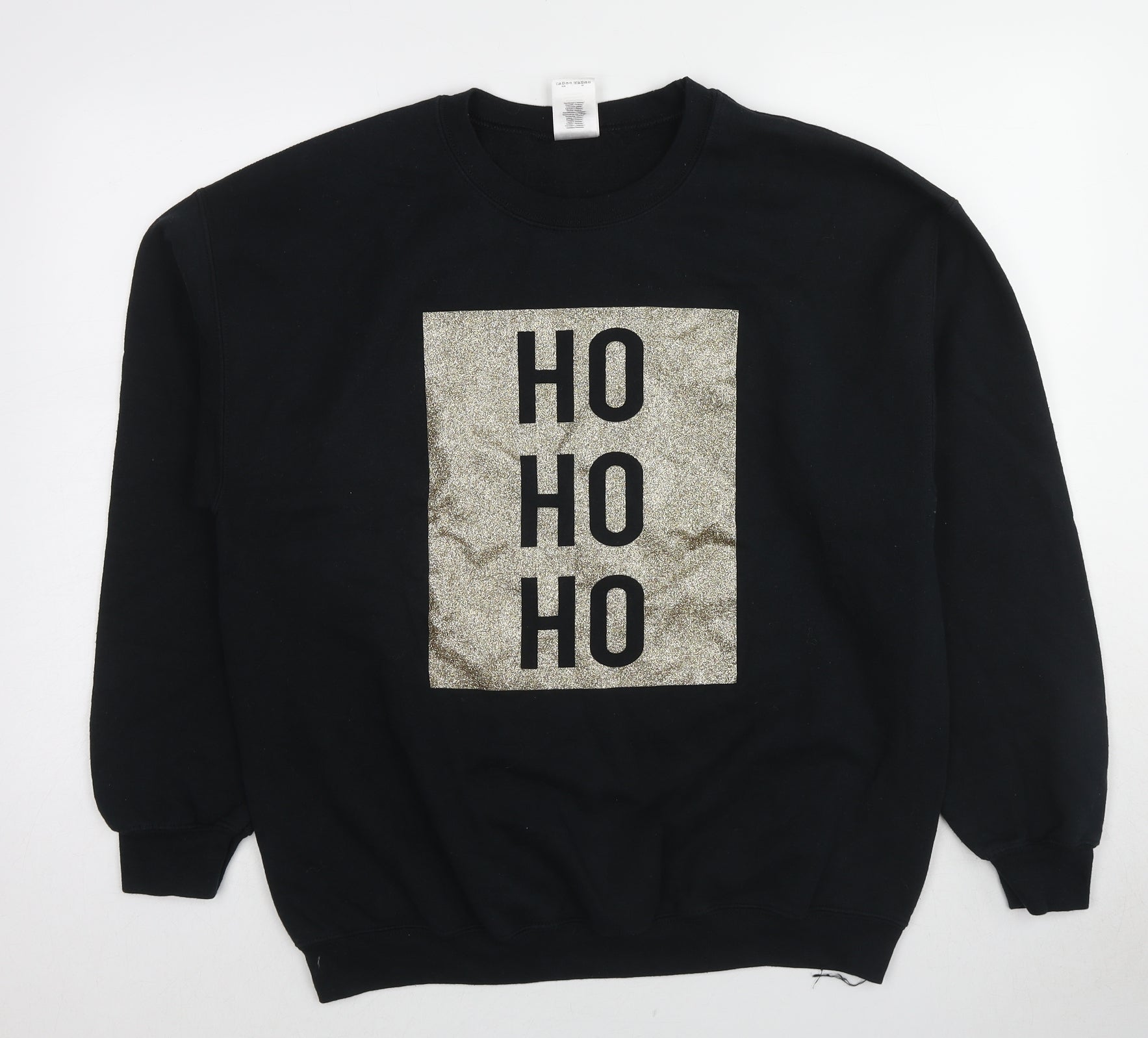 Gildan Womens Black Cotton Pullover Sweatshirt Size L Pullover - Christmas HO HO HO Glitter