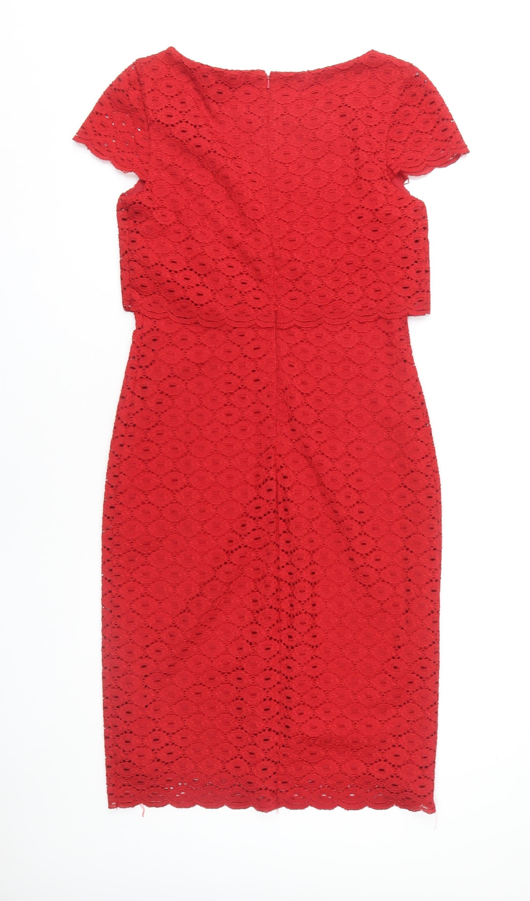Gina Bacconi Red Lace Sheath Dress UK 10