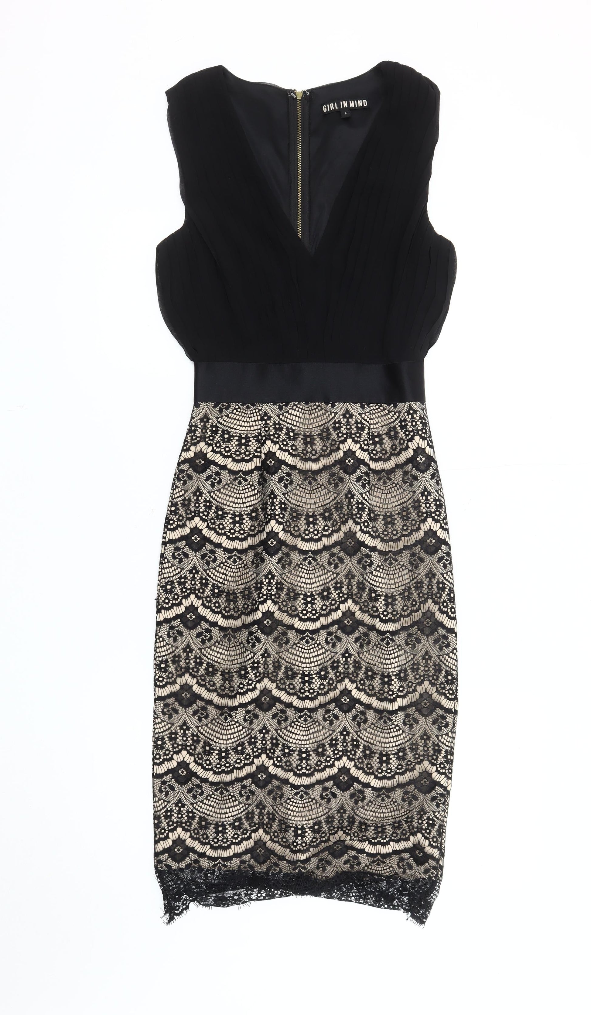 Girl in Mind Women's Black Beige Sheath Dress Size 8