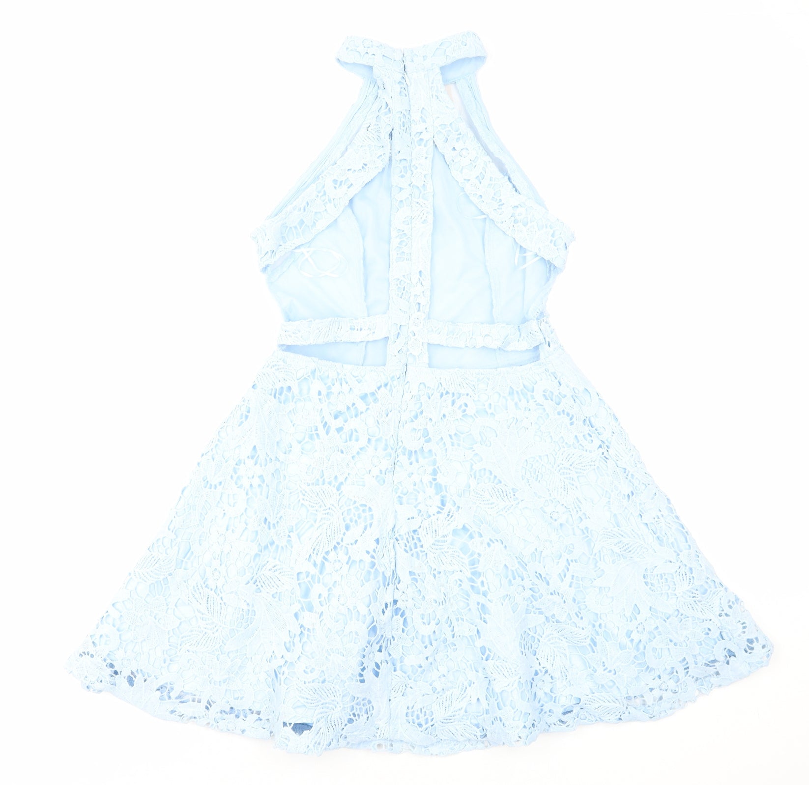 Girl in Mind Womens Blue Polyester Fit & Flare Size 10 Halter Zip