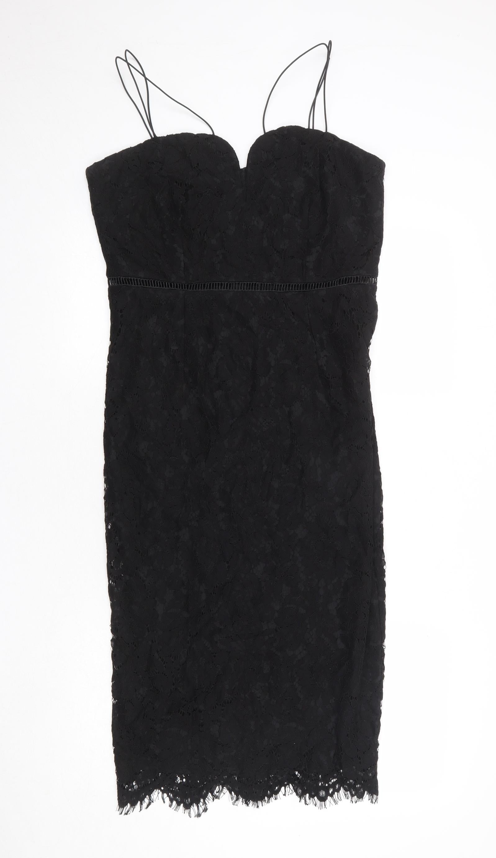 Girls On Film Womens Black Geometric Nylon Slip Dress Size 14 Sweetheart Zip