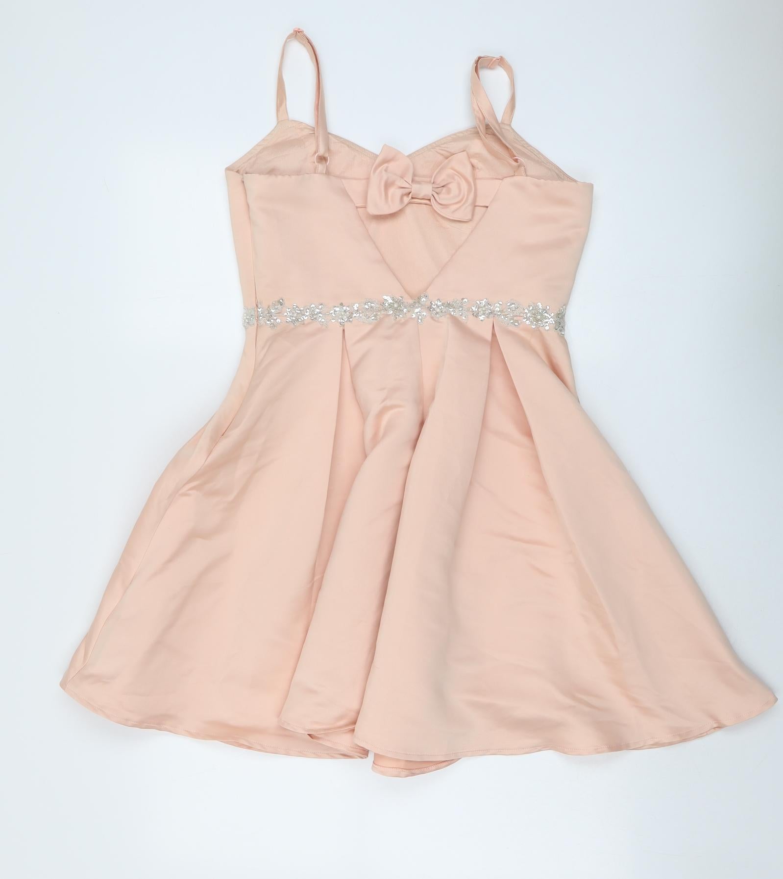 Girls On Film Womens Pink Polyester Slip Dress Size 12 V-Neck Zip - Embellished Waist
