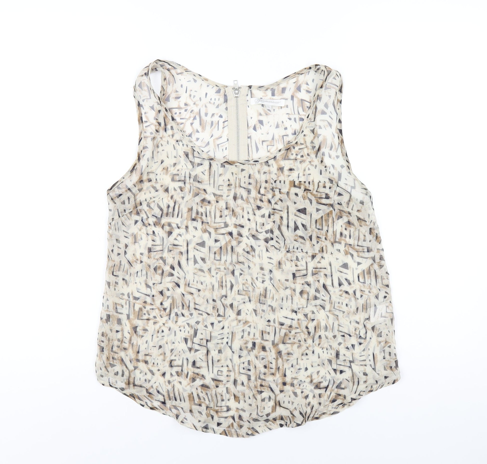 Glamorous Womens Beige Geometric Polyester Basic Tank Size 10 Scoop Neck