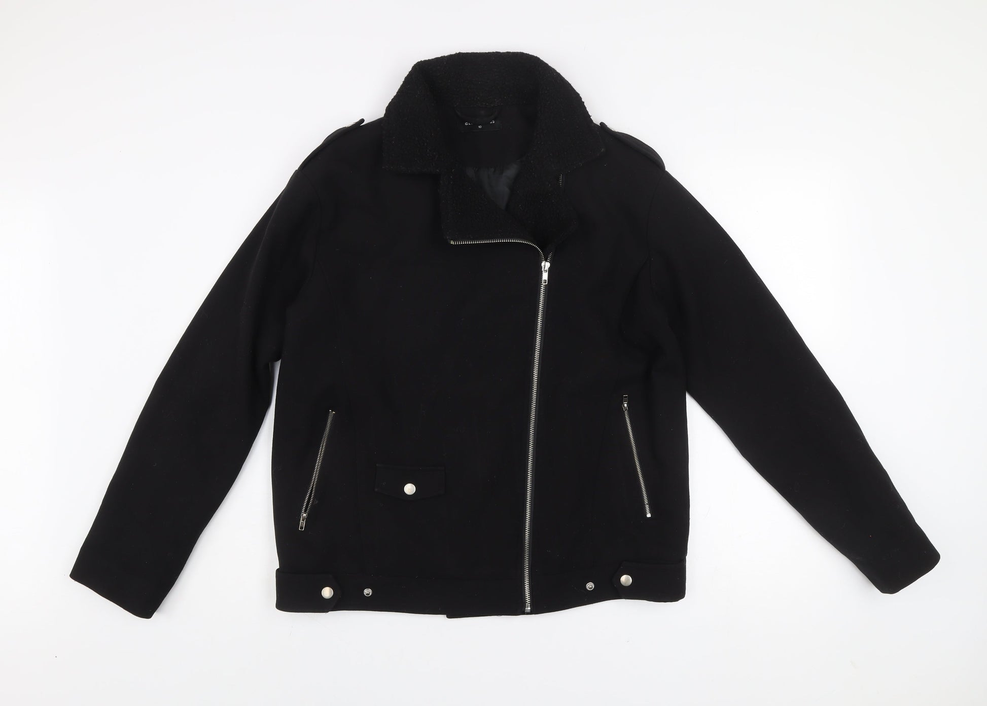 Glamorous Women's Black Biker Jacket Size 10 Lined Zip Casual