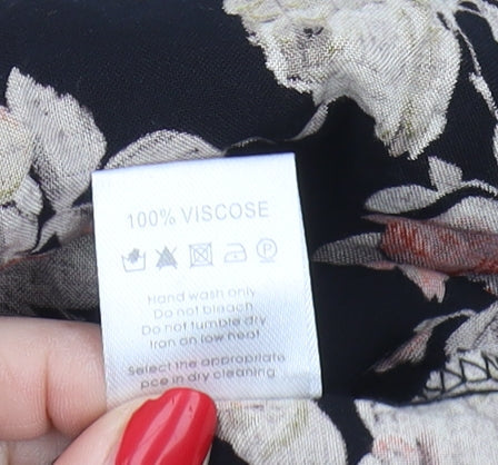 Glamorous Women's Black Floral A-Line Midi Skirt Size 12