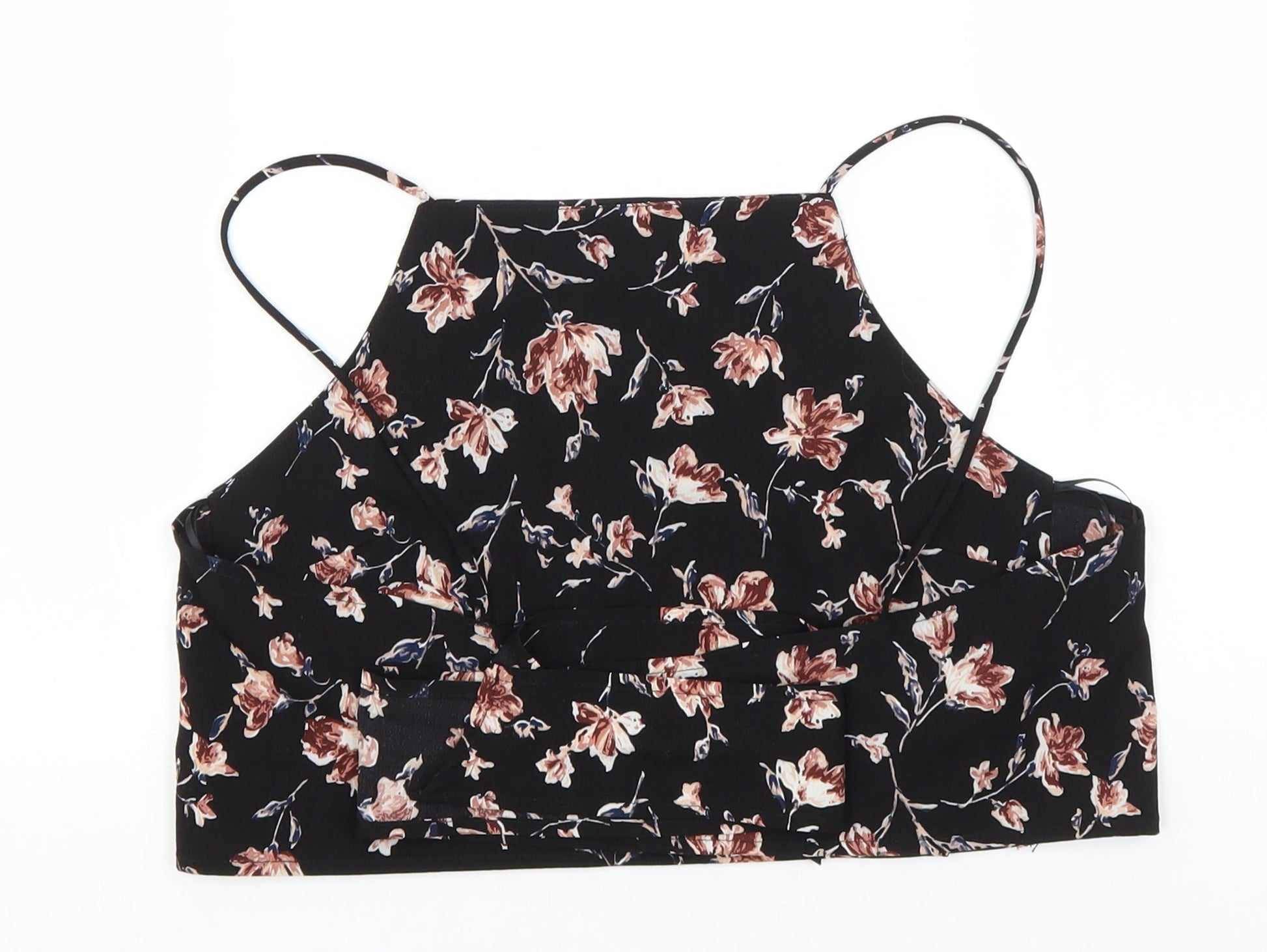 Glamorous Womens Black Floral Polyester Basic Tank Size XS Off the Shoulder