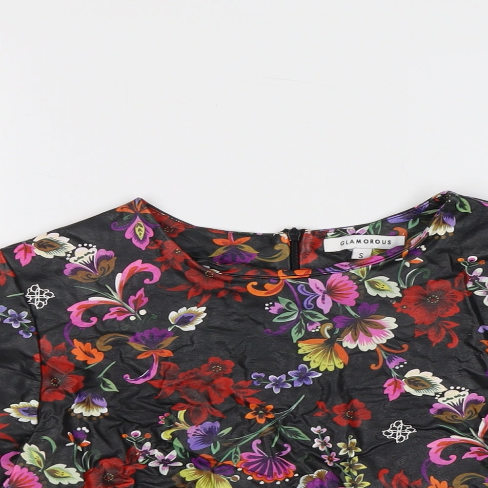 Glamorous Womens Black Geometric Polyester Basic T-Shirt Size S Round Neck