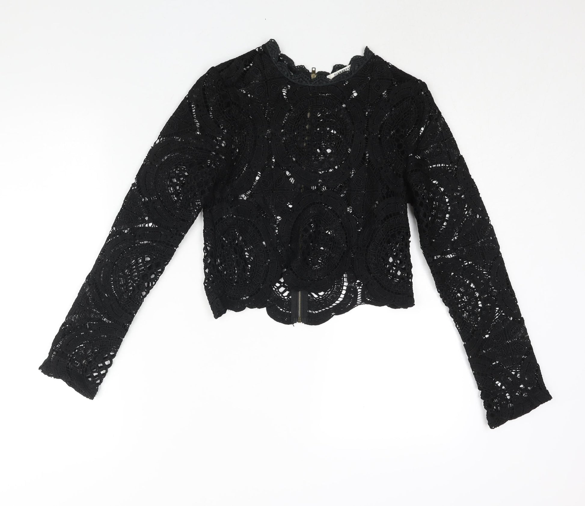 Glamorous Womens Black Polyester Basic Blouse Size S Round Neck - Semi Sheer