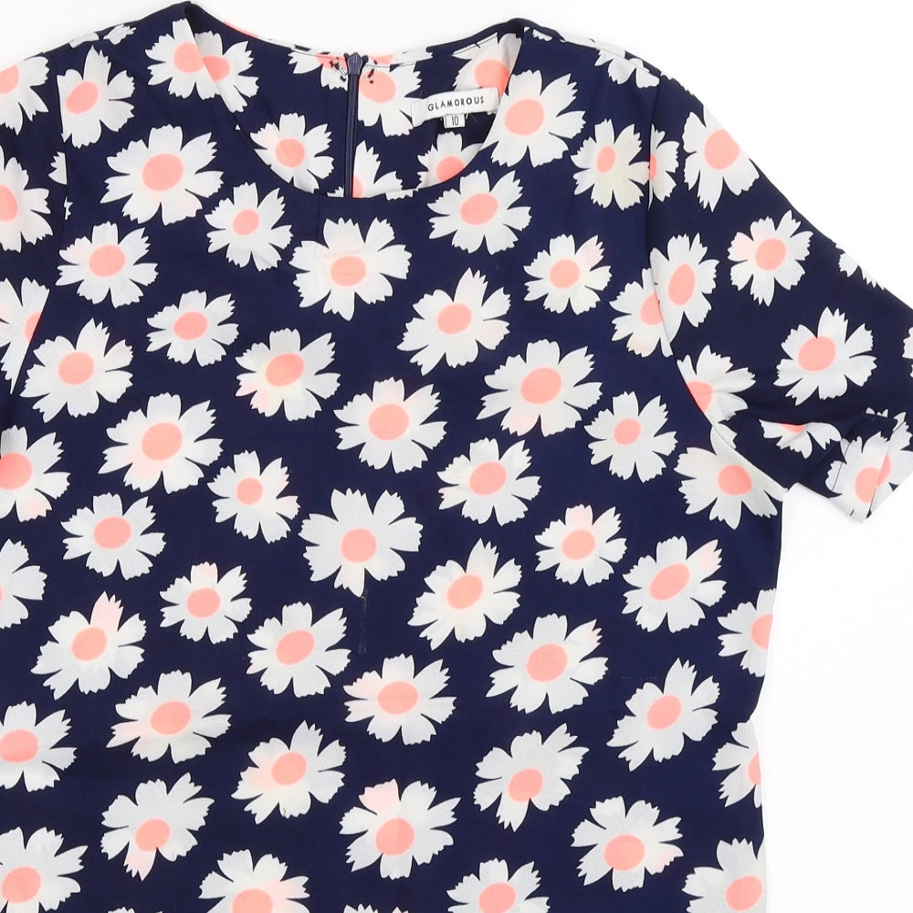 Glamorous Womens Blue Fair Isle Basic Blouse Size 10