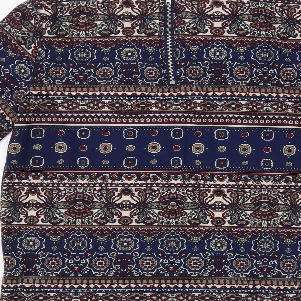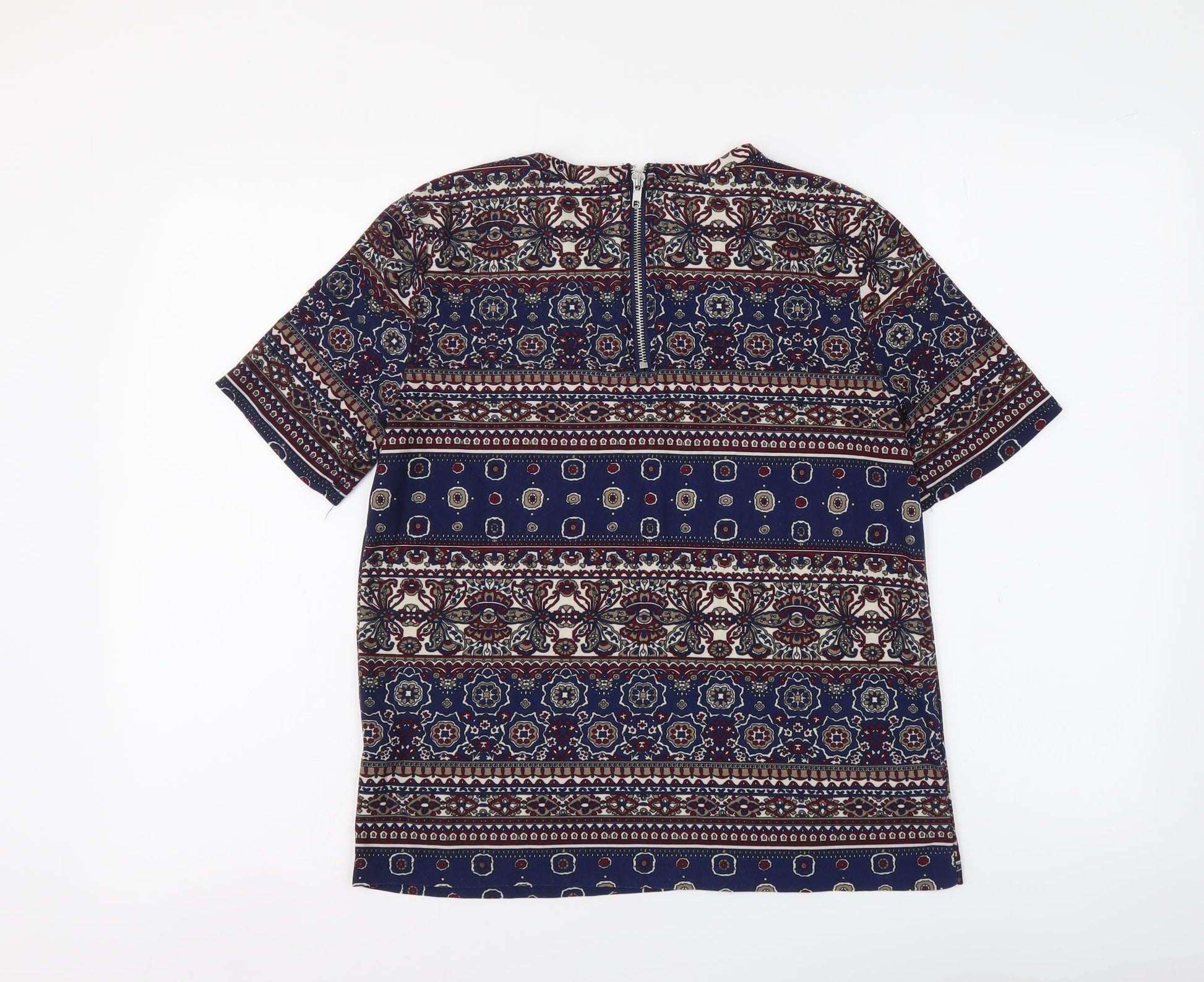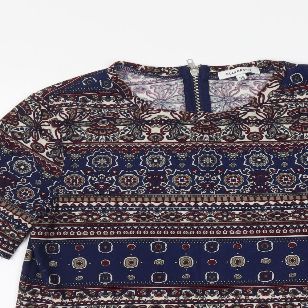 Glamorous Womens Blue Geometric Polyester T-Shirt Size XS Round Neck