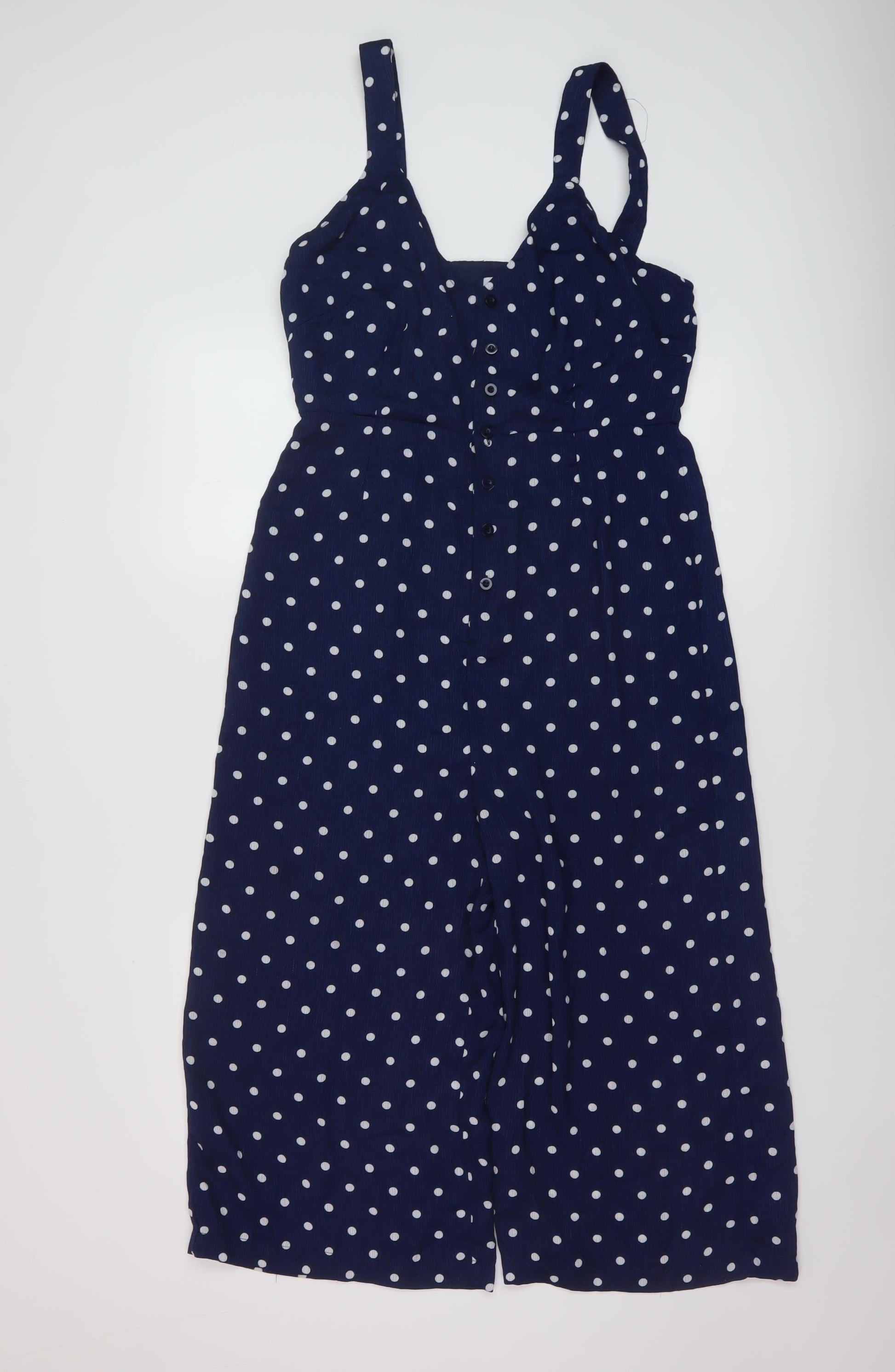 Glamorous Womens Blue Polka Dot Polyester Jumpsuit One-Piece Size 12 Button