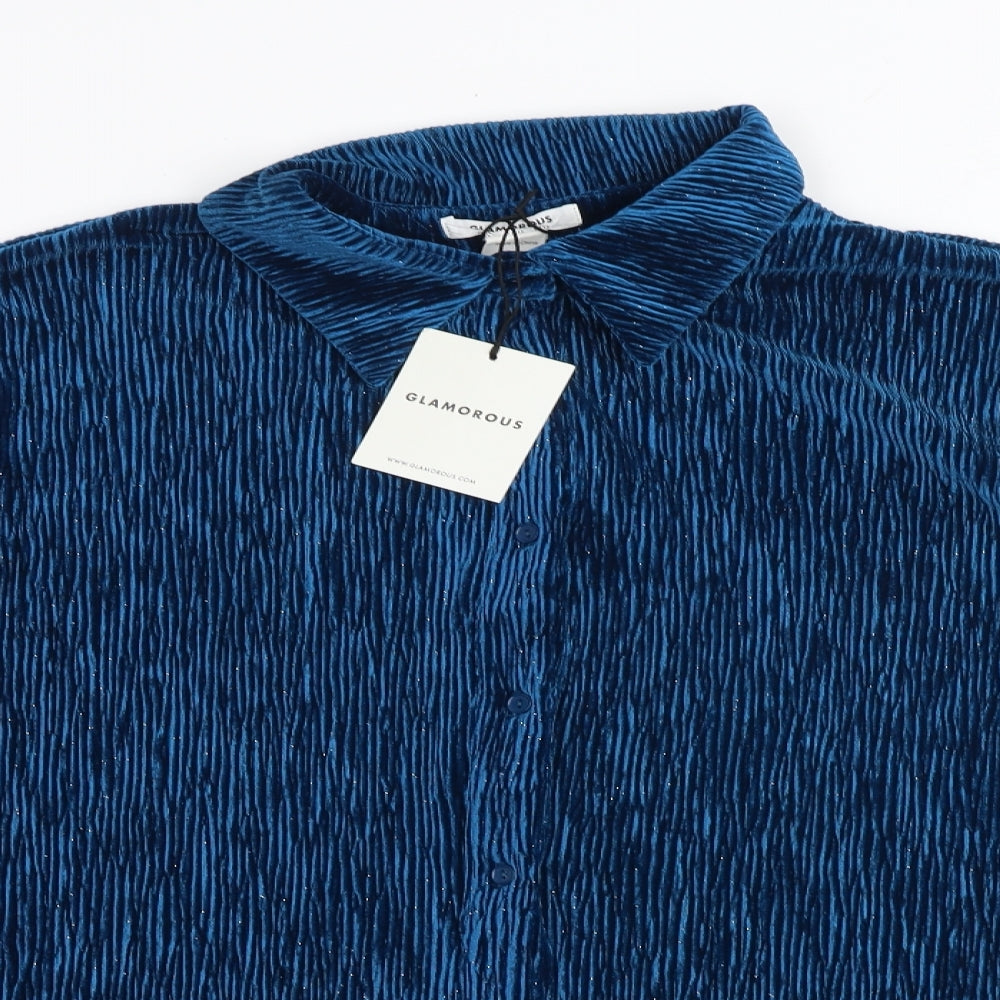 Glamorous Womens Blue Polyester Basic Button-Up Size 16 Collared