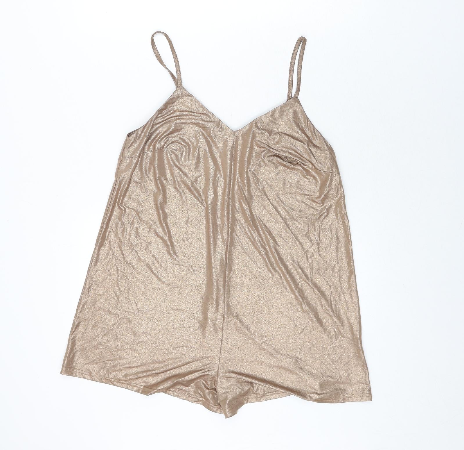 Glamorous Womens Gold Polyester Romper One-Piece Size S Pullover