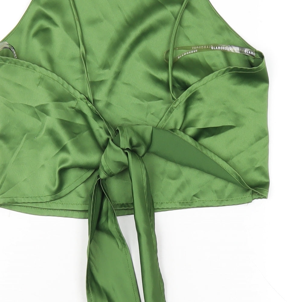 Glamorous Womens Green Polyester Camisole T-Shirt Size 8 Square Neck