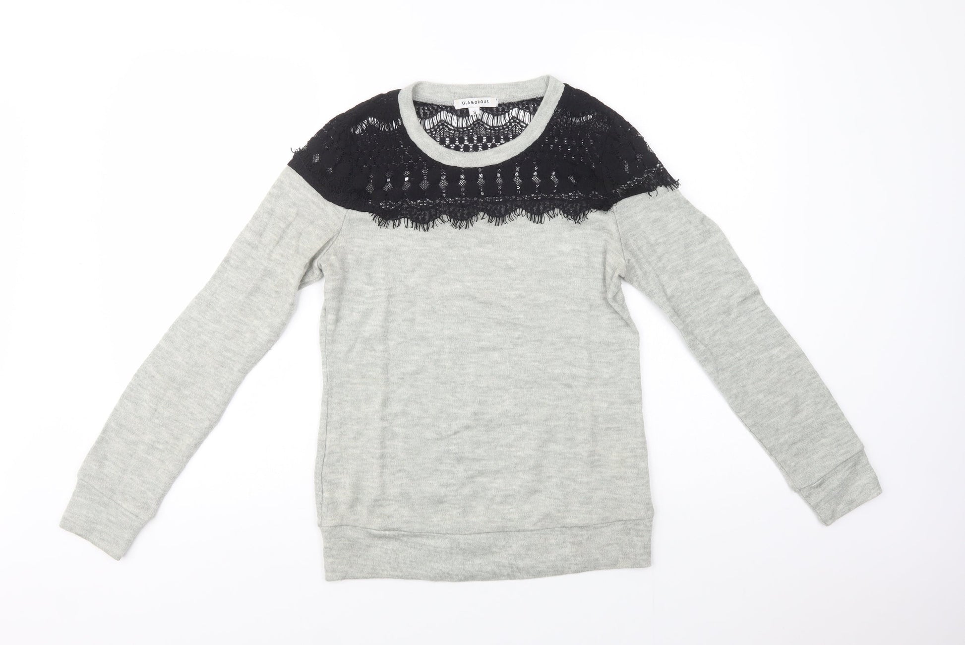 Glamorous Womens Grey Crew Neck Acrylic Henley Jumper Size S - Lace Detail
