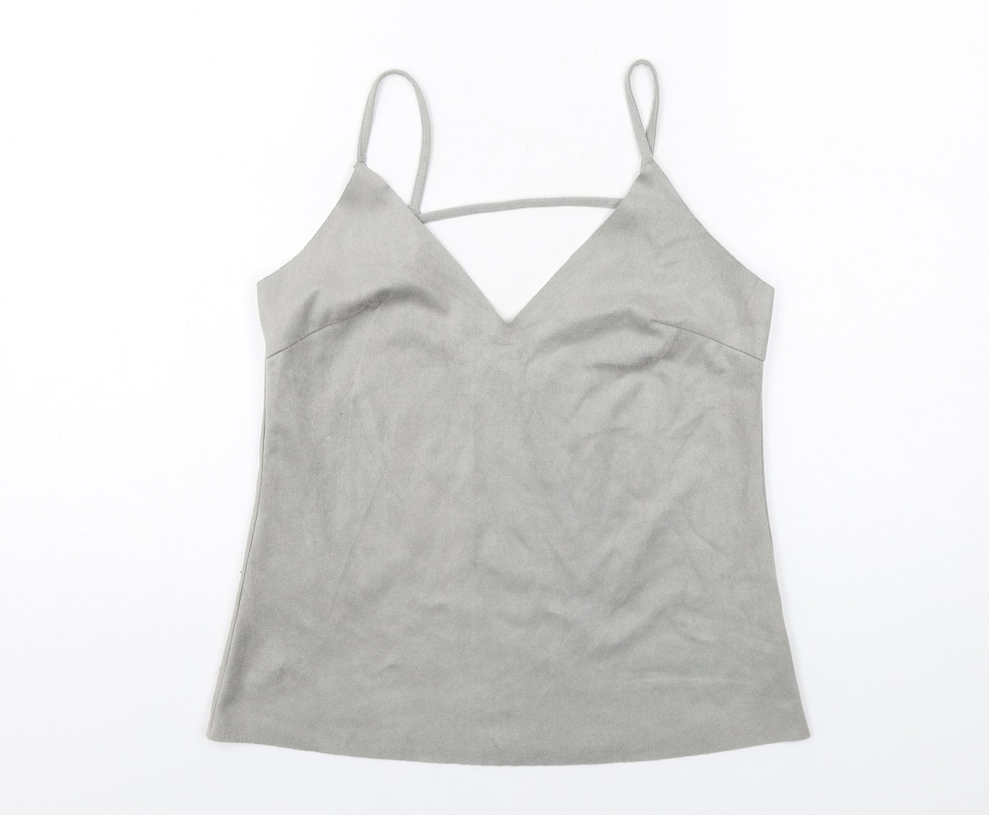 Glamorous Womens Grey Polyester Camisole T-Shirt Size S V-Neck - Suede Style